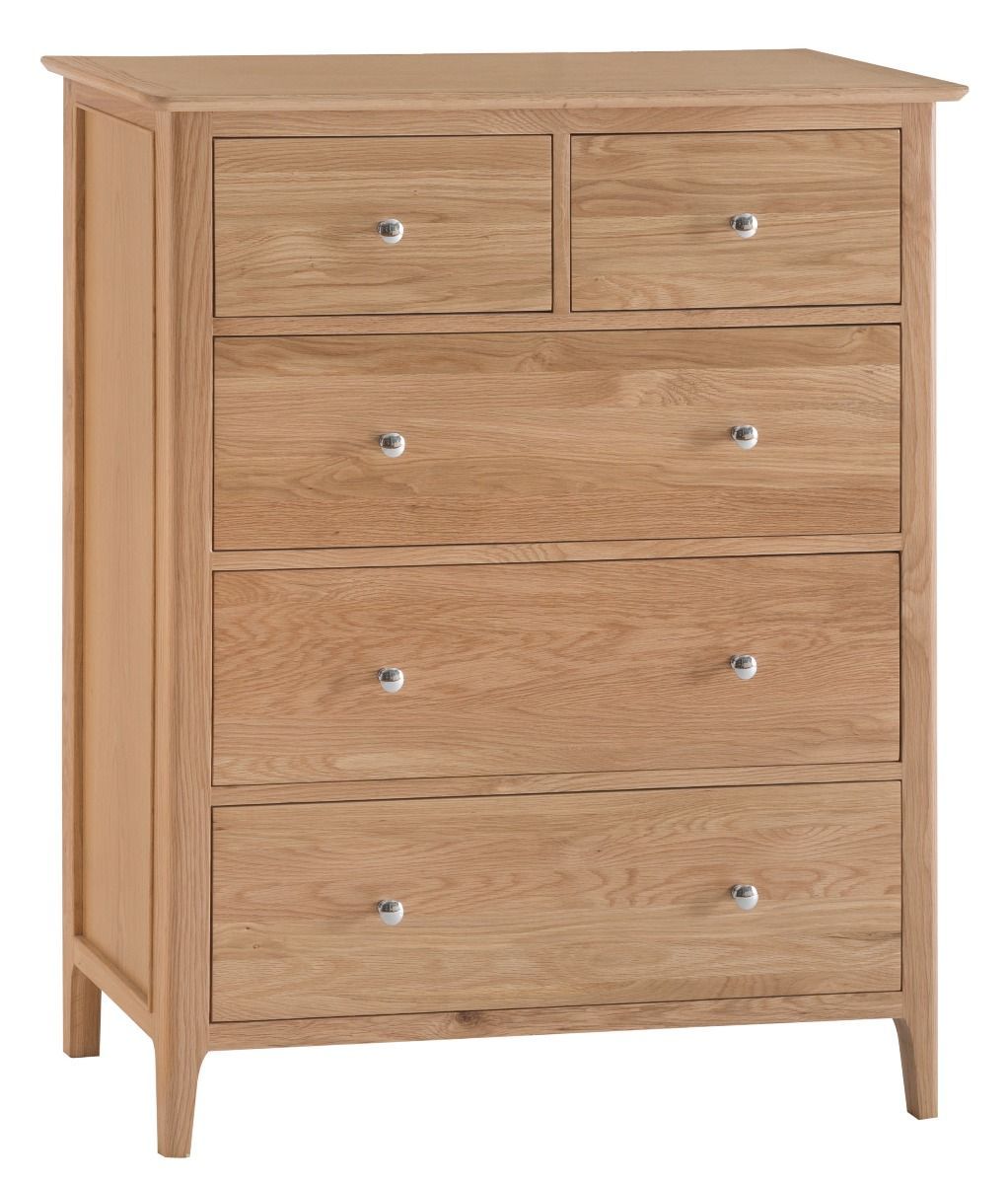 JERICHO Oak Finish Chest of Drawers - Large-sized, 5 Drawers, Ready Assembled