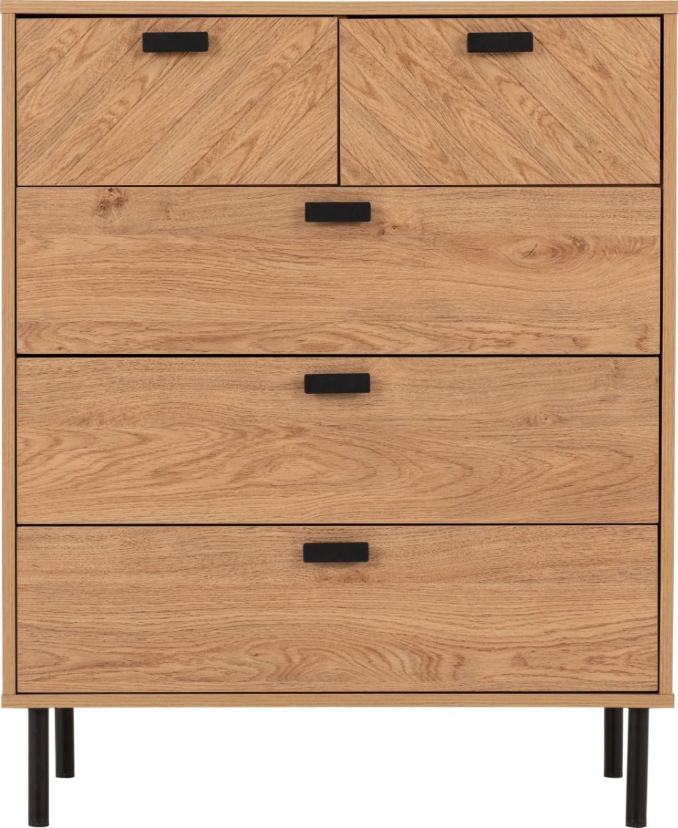 LETHBRIDGE Oak Finish Chest of Drawers - Medium-sized, 5 Drawers