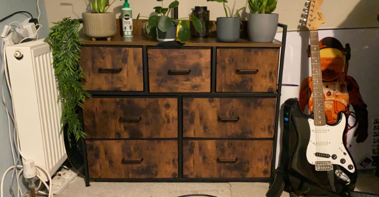 LHASA Oak Finish Chest of Drawers - Large-sized, 7 Drawers, Double