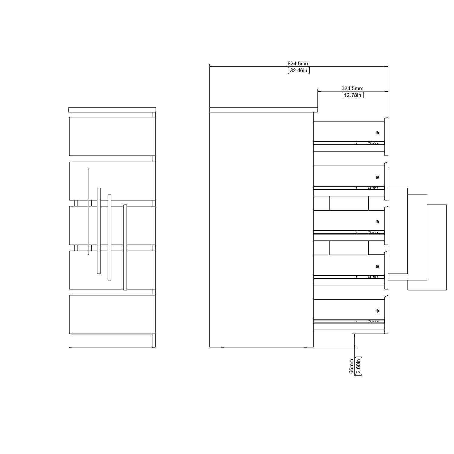 NANAIMO Oak Finish Chest of Drawers - Small-sized, 5 Drawers