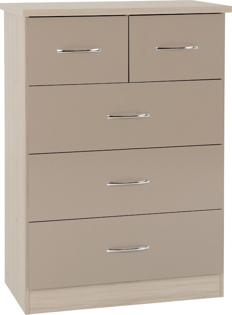 NEWBIGGIN III Oak Finish Chest of Drawers - Medium-sized, 5 Drawers