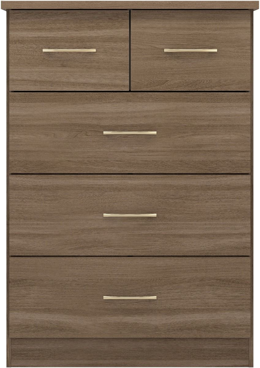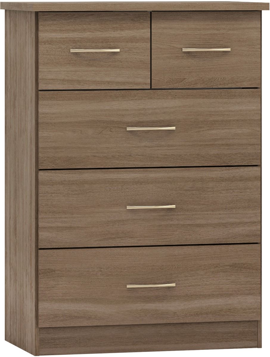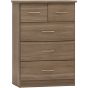 NEWBIGGIN IV Oak Finish Chest of Drawers - Medium-sized, 5 Drawers