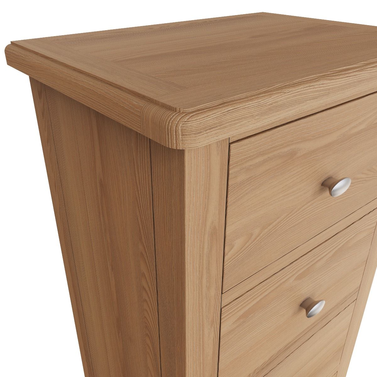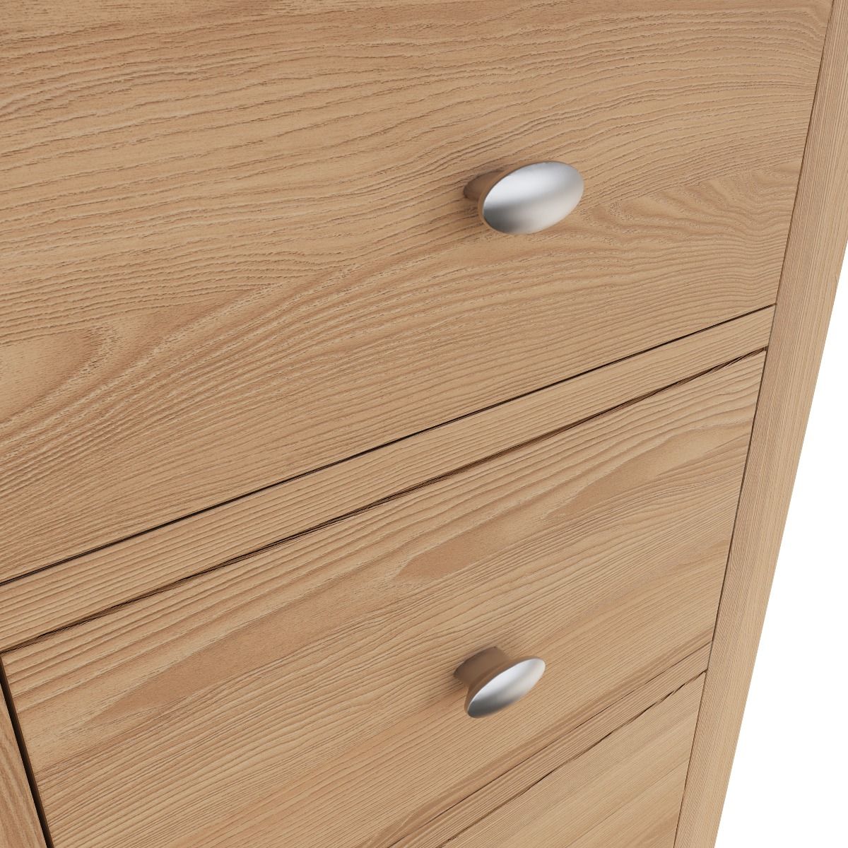 This collection is not only beautiful but offers exceptional value for money, featuring rounded corners with bevel detailing to the tops and tapered legs, this collection is finished in a light oak with brushed metal handles.