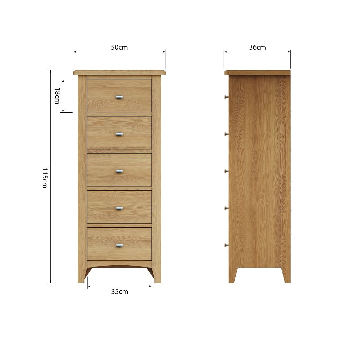 You're reviewing:NOTTINGHAM Oak Finish Chest of Drawers - Tallboy, Medium-sized, 5 Drawers, Ready Assembled