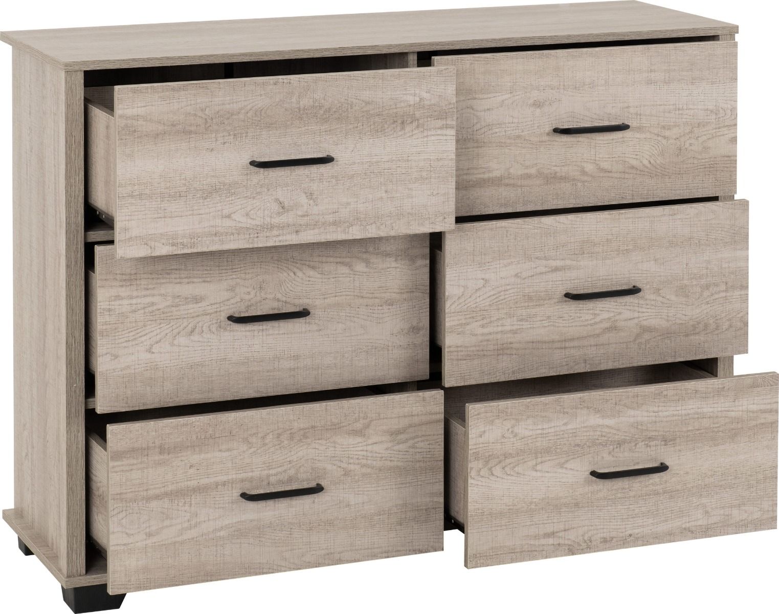 OLDBURY Oak Finish Chest of Drawers - Large-sized, 6 Drawers