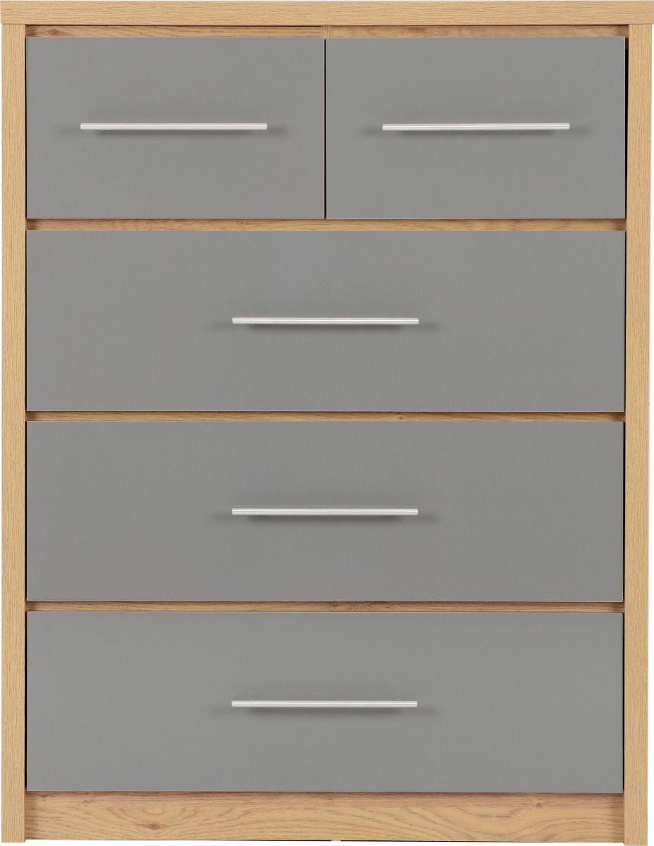 SELSEY III Oak Finish Chest of Drawers - Medium-sized, 5 Drawers