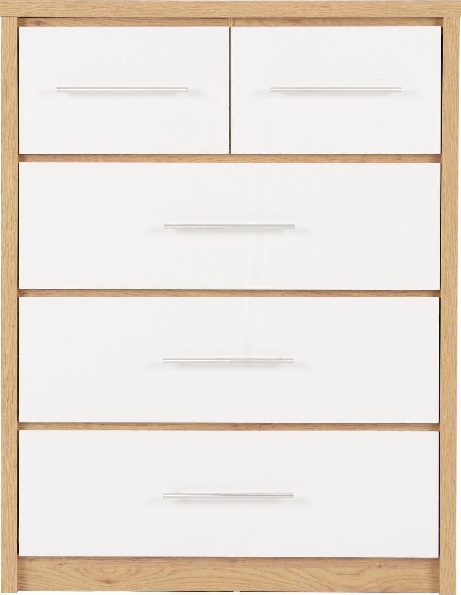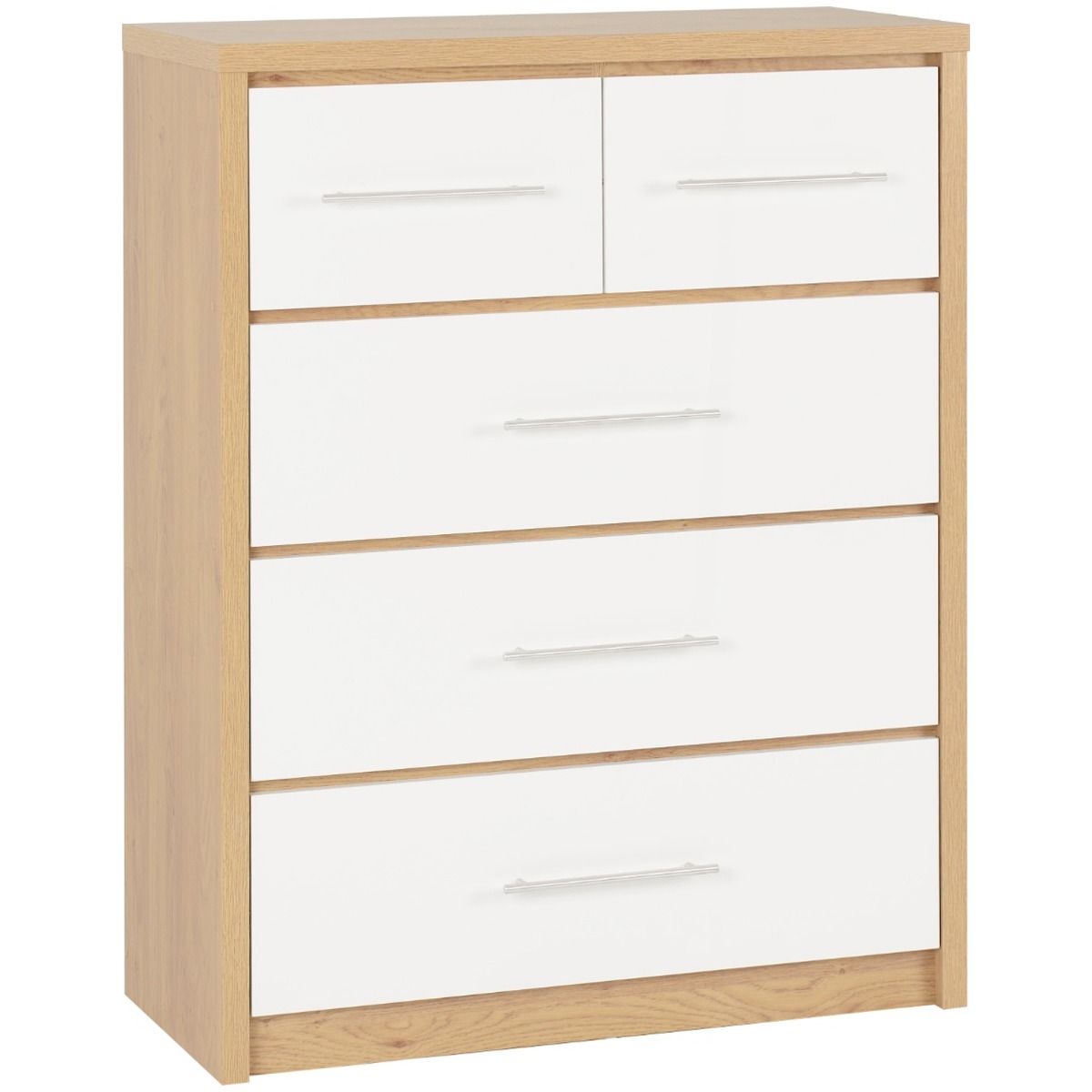 SELSEY IV Oak Finish Chest of Drawers - Medium-sized, 5 Drawers