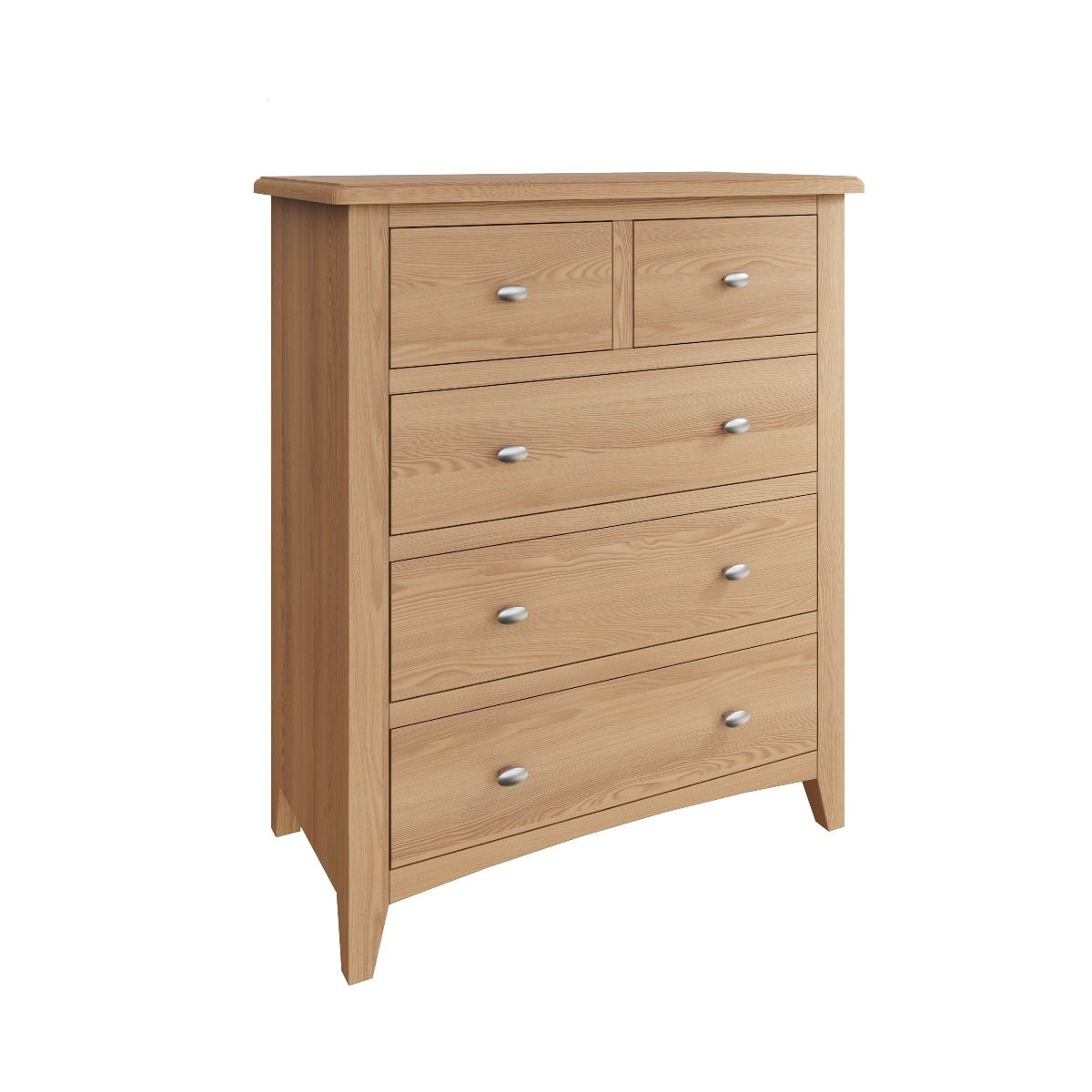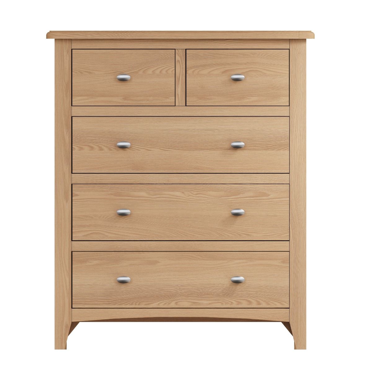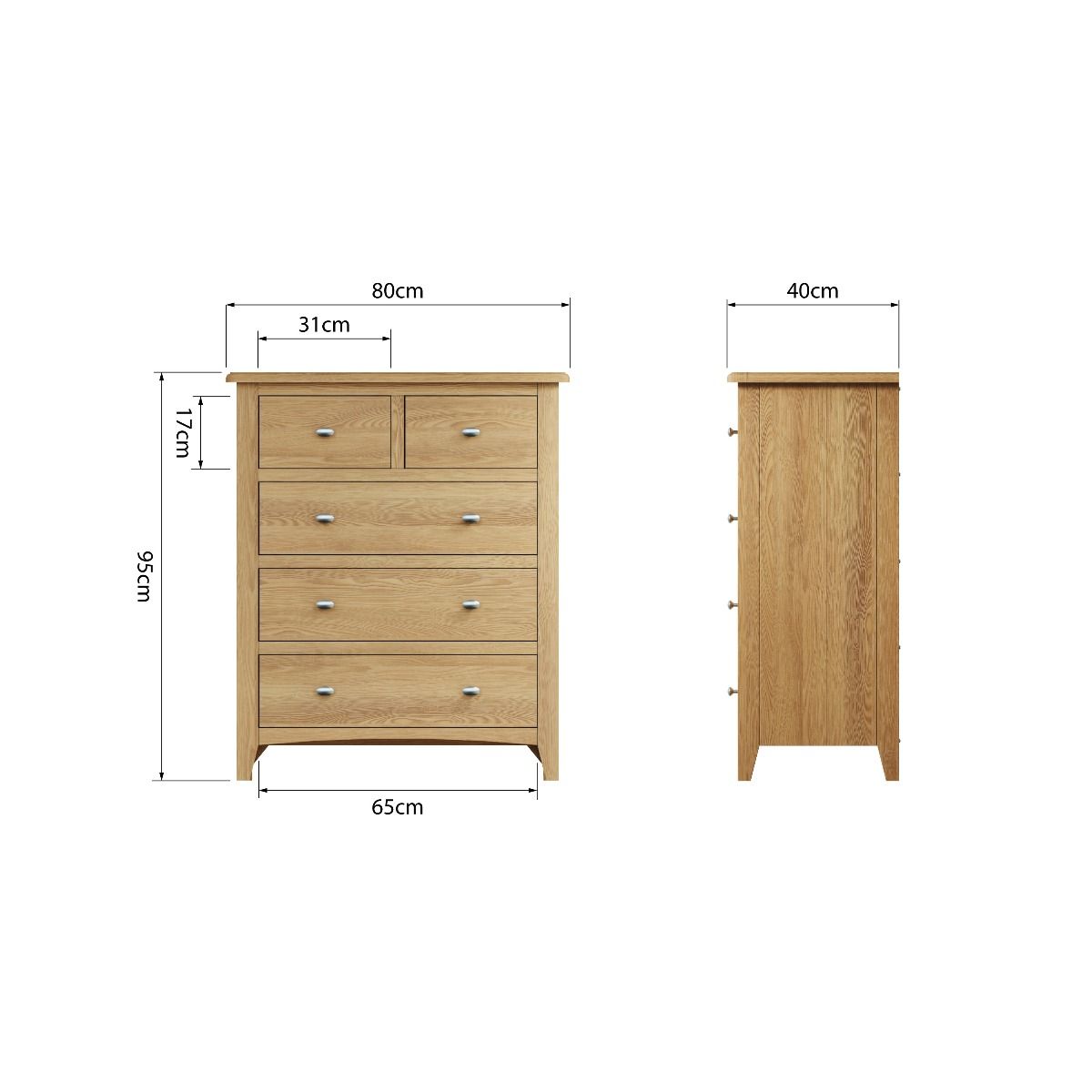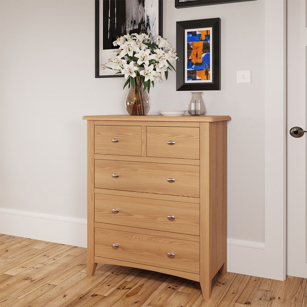 TRACY Oak Finish Chest of Drawers - Medium-sized, 5 Drawers, Ready Assembled