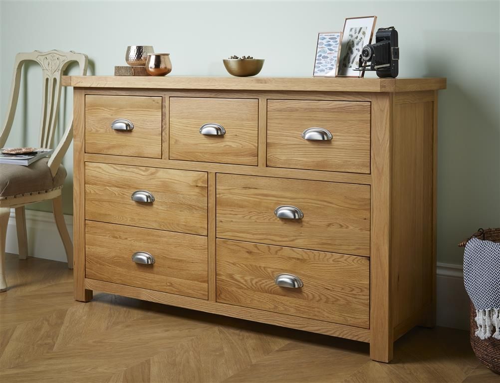 WOKINGHAM Oak Finish Chest of Drawers - Large-sized, 7 Drawers, Double