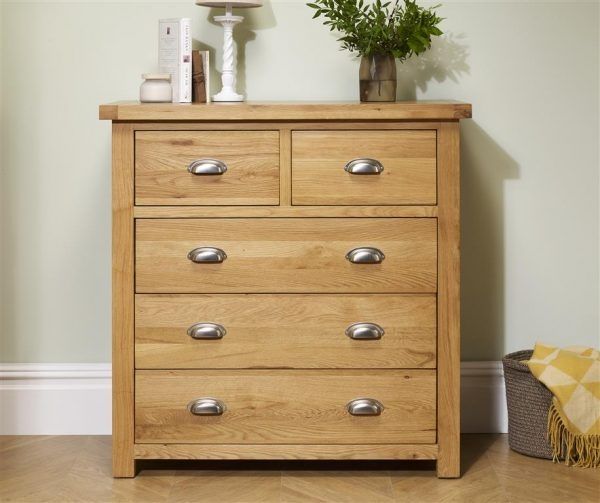 WOKINGHAM Oak Finish Chest of Drawers - Medium-sized, 5 Drawers