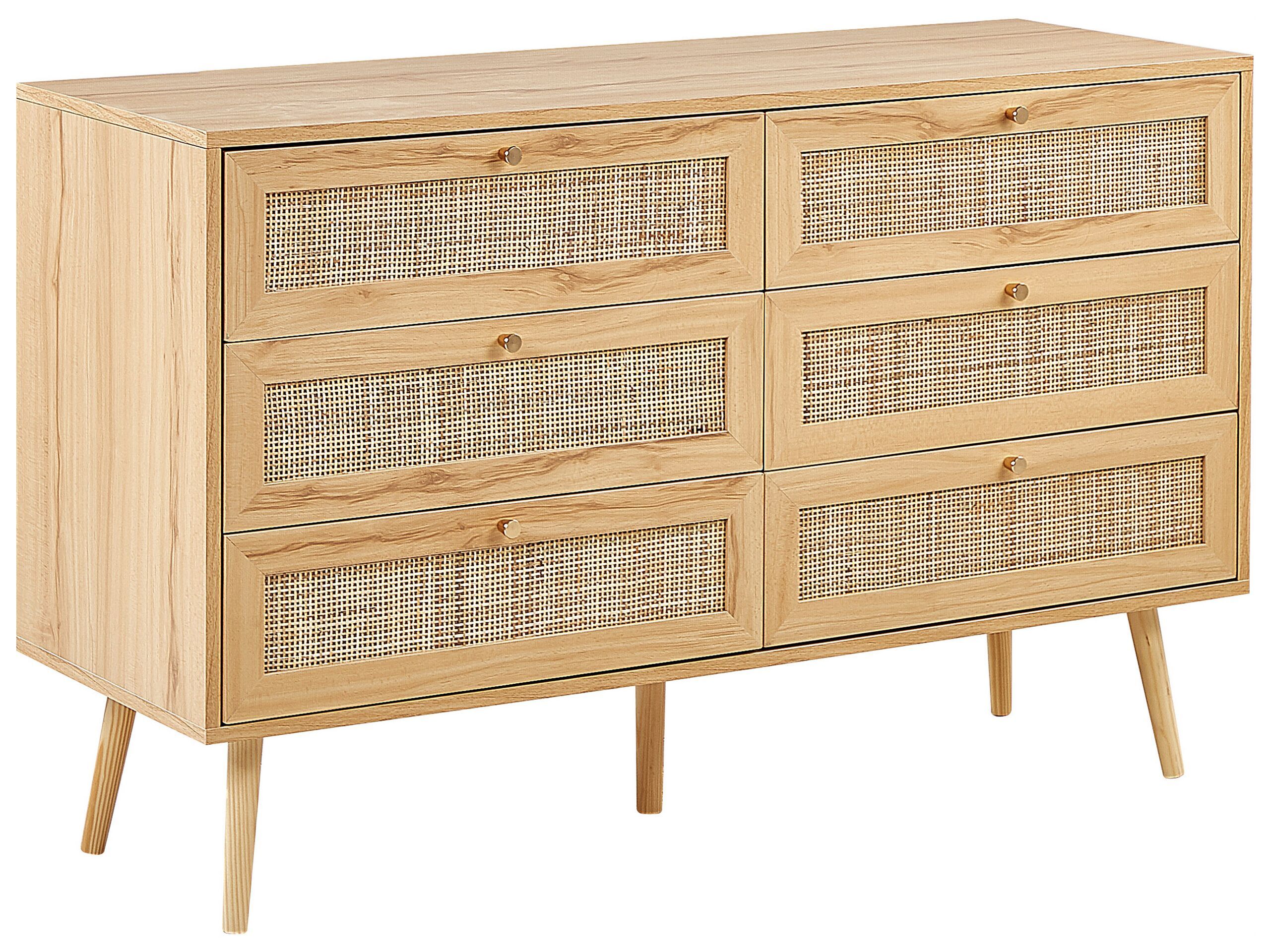 PADOVA Oak Finish Rattan Chest of Drawers - Large-sized, 6 Drawers