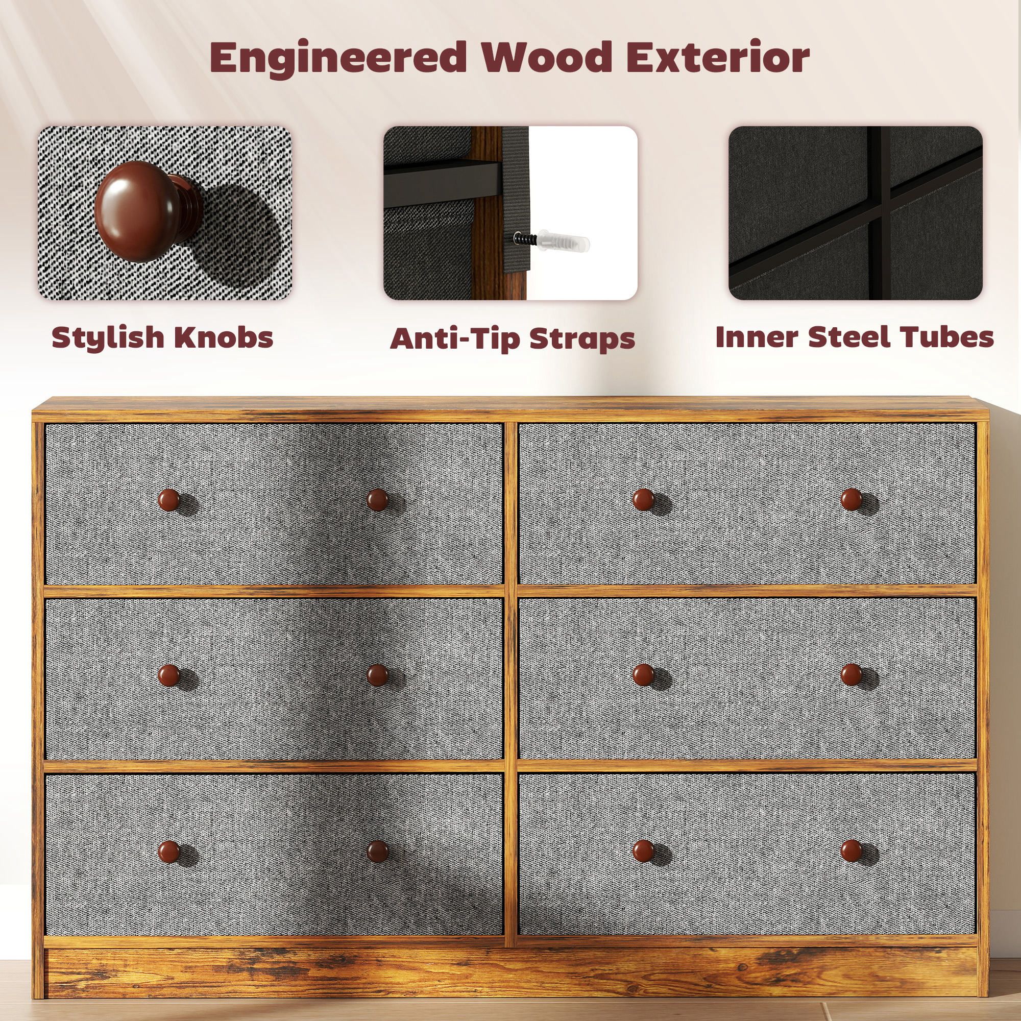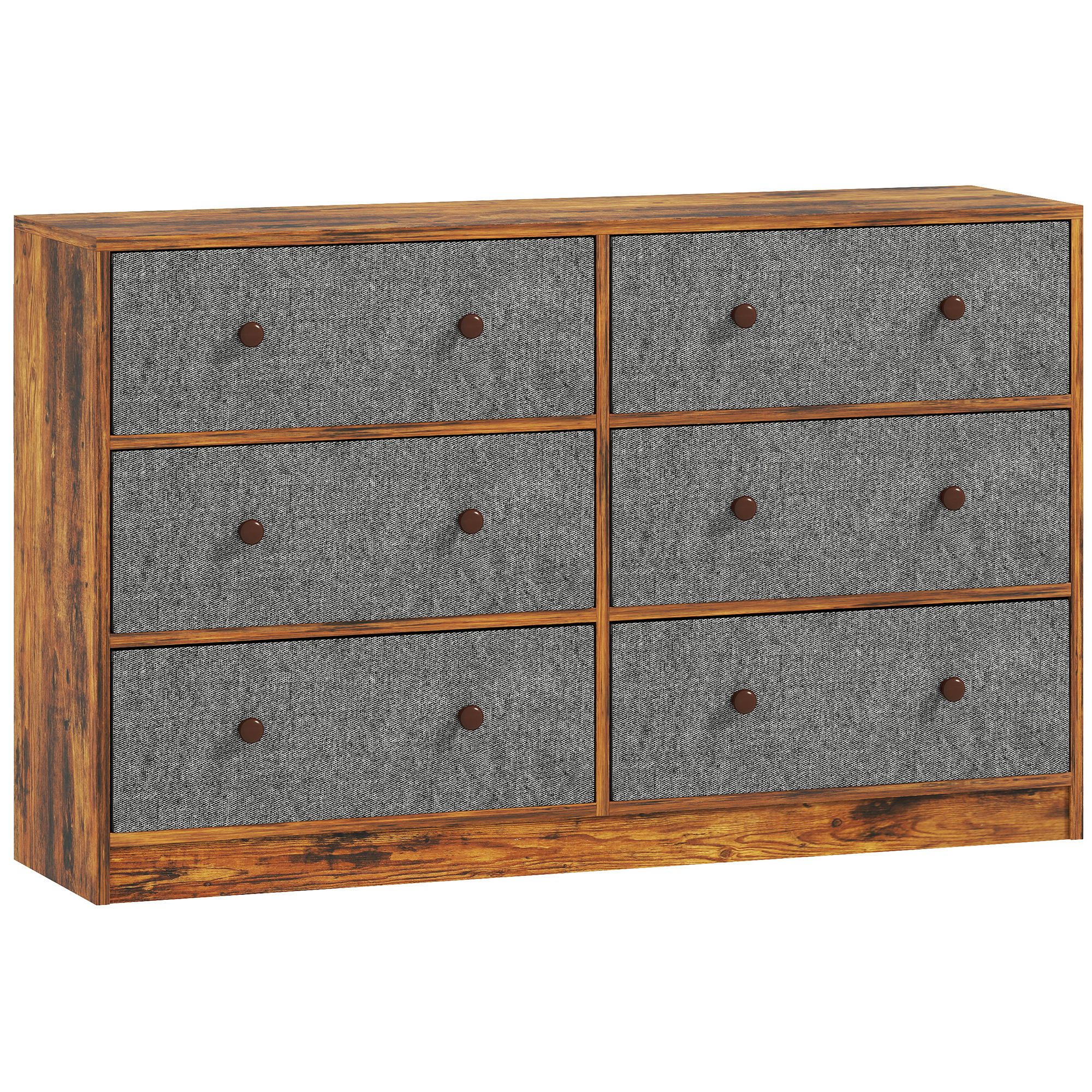 OAKEN Oak Finish Chest of Drawers - Large-sized, 6 Drawers, Double, Fabric Drawers