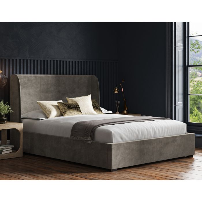 Oakham Classic Design Headboard Velvet Fabric Ottoman 4ft6 Double Bed - Mid Grey