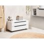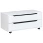 This modern white storage unit features two spacious drawers, perfect for keeping your bathroom essentials organized and easily accessible. With its sleek design and practical wheels for easy movement, it is both stylish and functional. Made from durable MDP for body, which is easy to clean, and synthetic material for its wheels, this unit offers a versatile storage solution, while also being a decorative item, that complements a variety of interior styles.