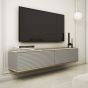 Elevate your entertainment space with the Obsidian Zenyx Floating TV Cabinet – a unique blend of modern design and functionality. Crafted from high-quality 16mm laminated board with rippled MDF fronts, this cabinet adds a touch of sophistication to your room. The push-to-open system and two hinged doors offer seamless access, while ABS edging ensures durability. Wall-mounted for a floating effect, this sleek cabinet is a statement piece for any contemporary setting. Assembly is required, and specific wall mountings are needed, promising a customized and chic addition to your home.