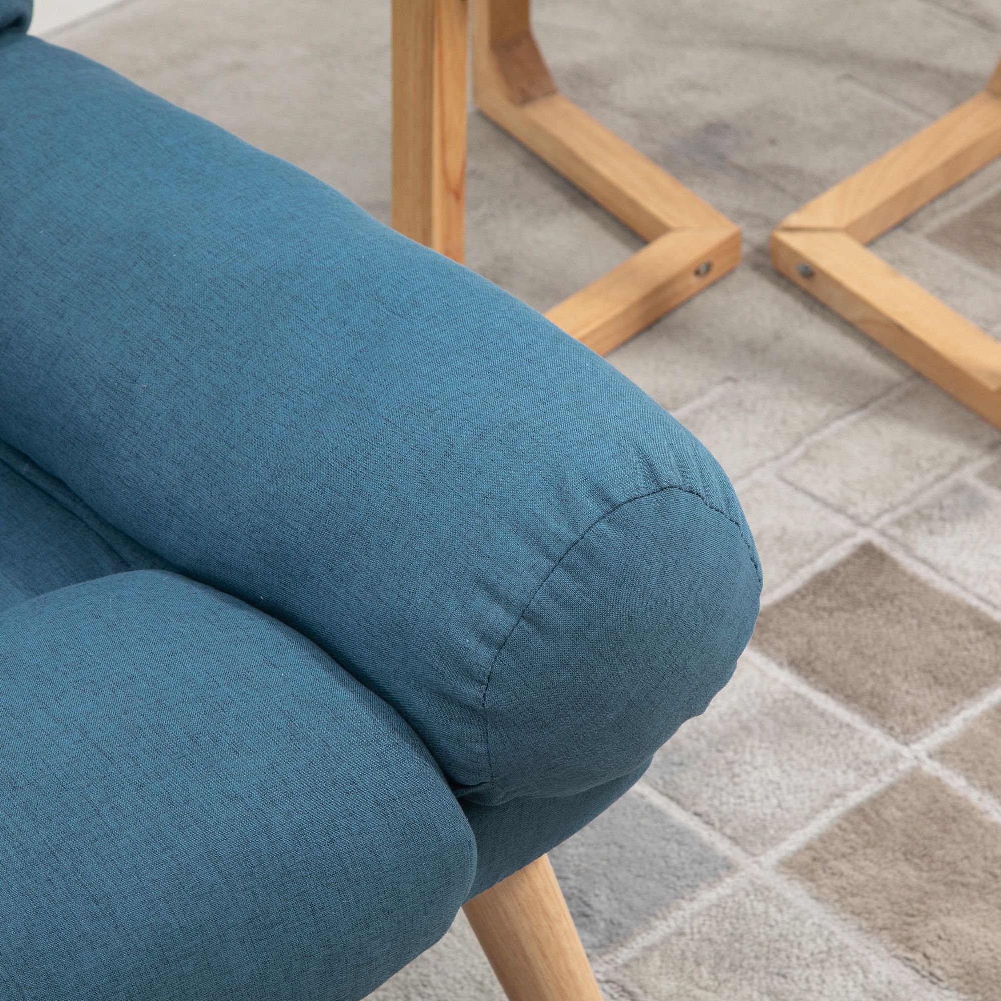 Occasional Recliner with Ottoman, 3-Position Adjustable Linen Fabric Reclining Lounger, Lazy Cushioned Sofa Chair with Footstool, Blue