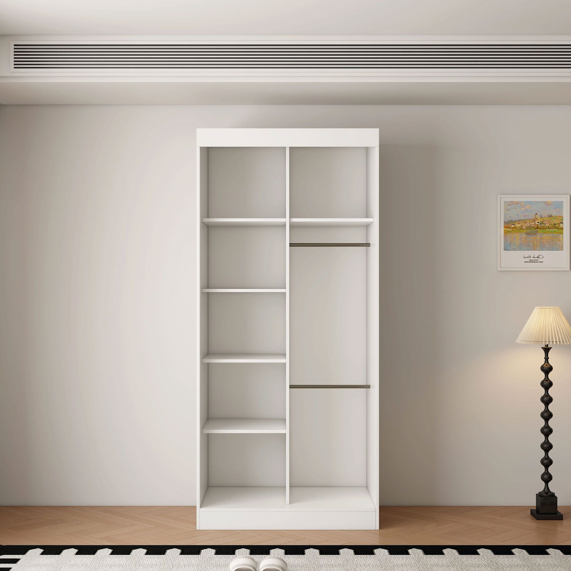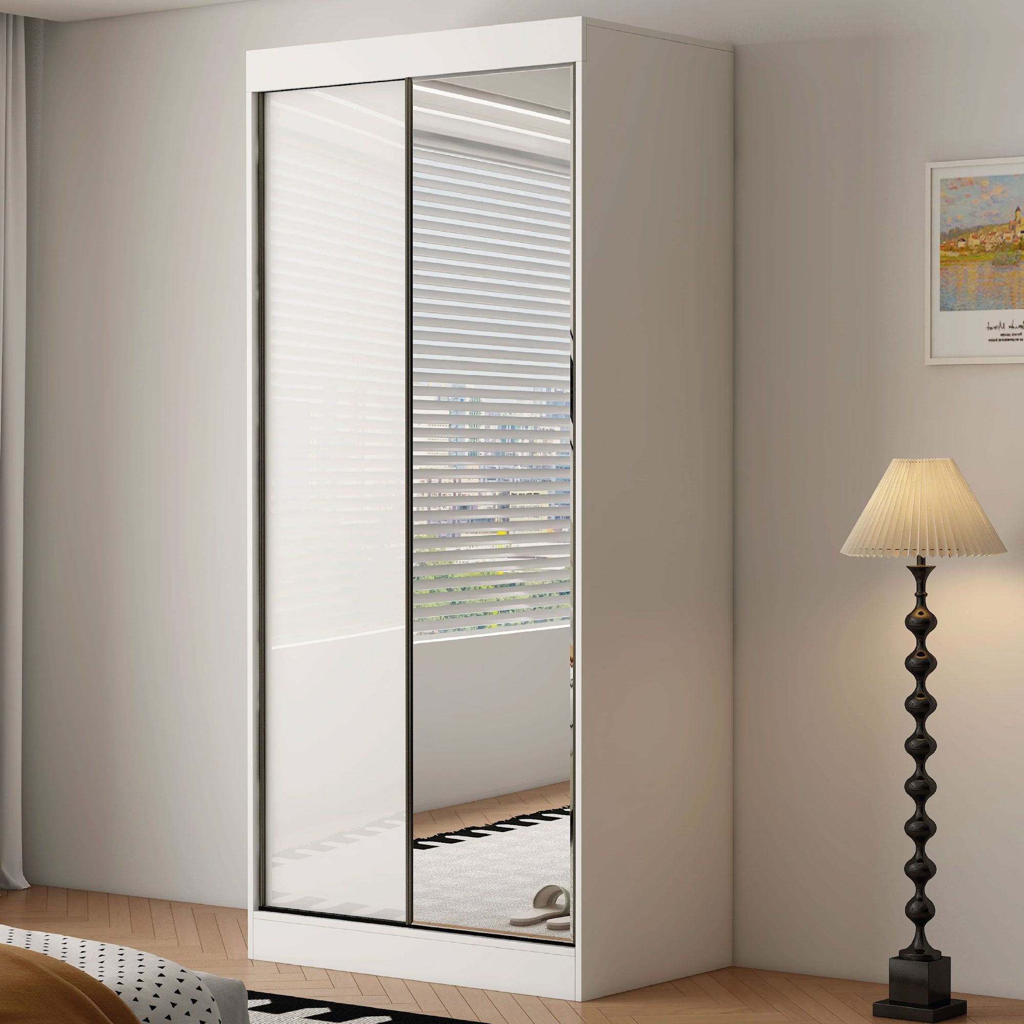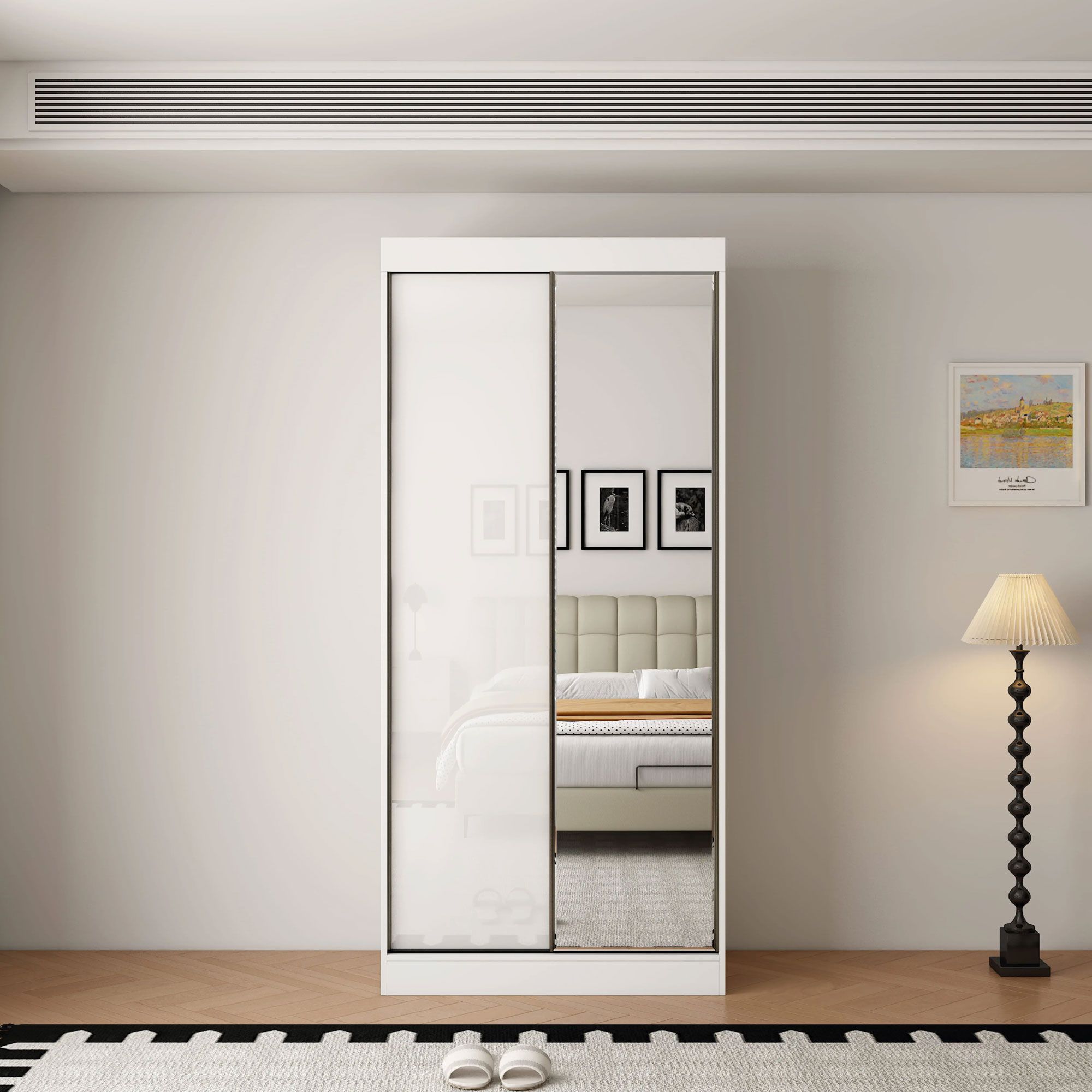 OCEANIC 2 Door Mirrored Sliding Wardrobe Gloss White - 100cm