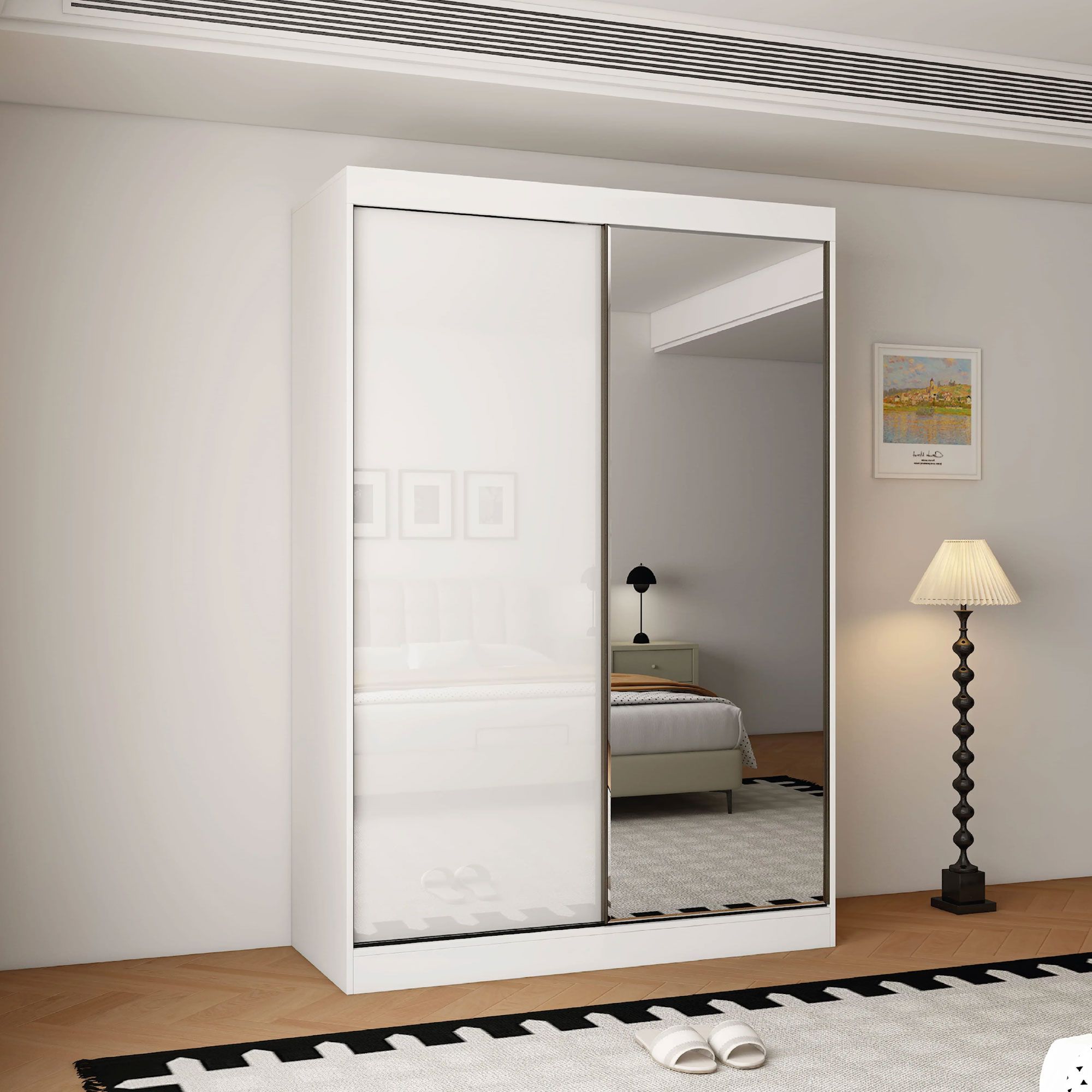 OCEANIC 2 Door Mirrored Sliding Wardrobe Gloss White - 150cm
