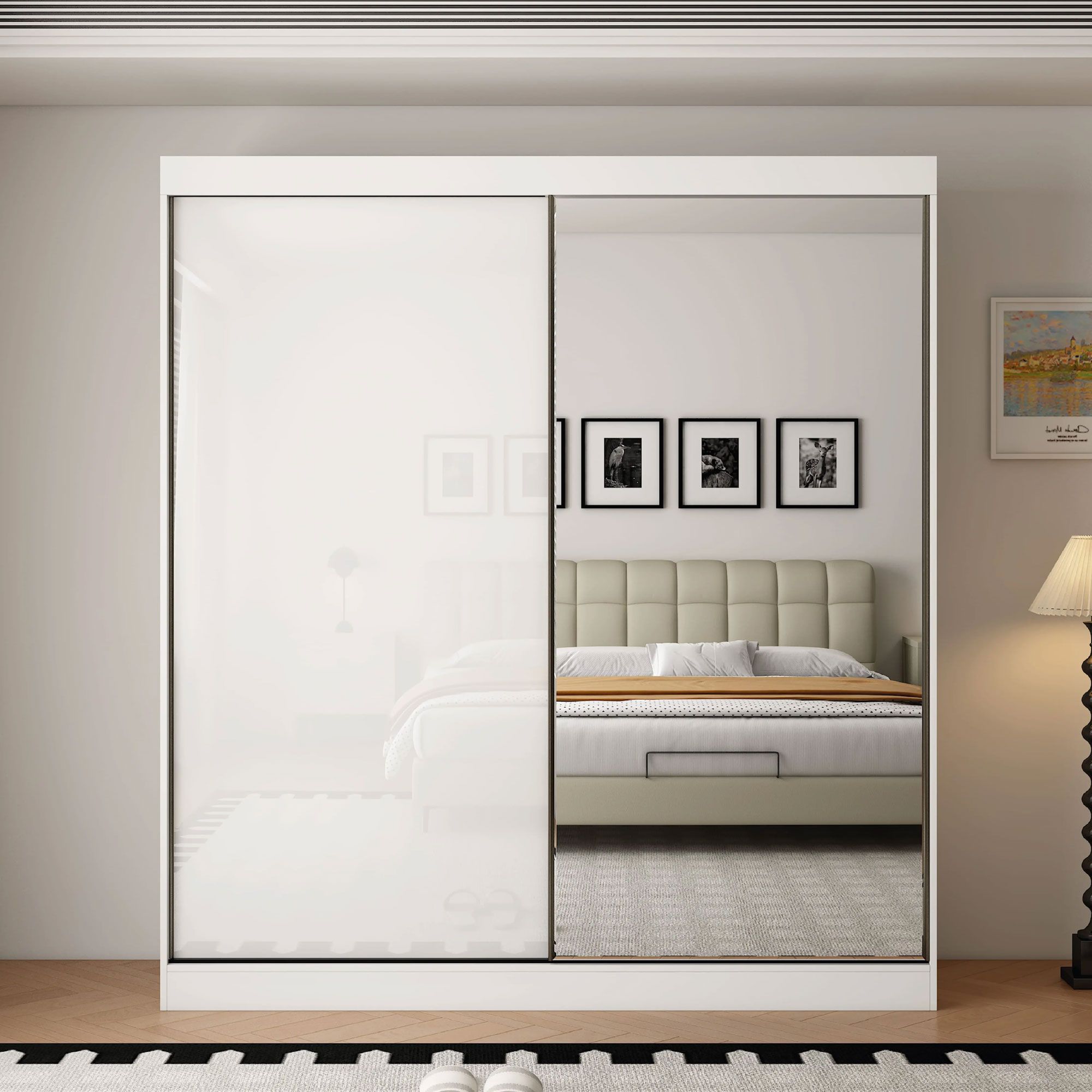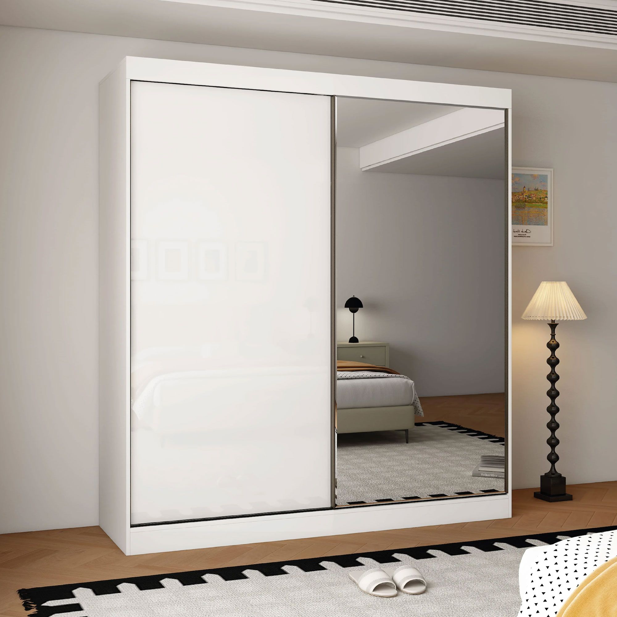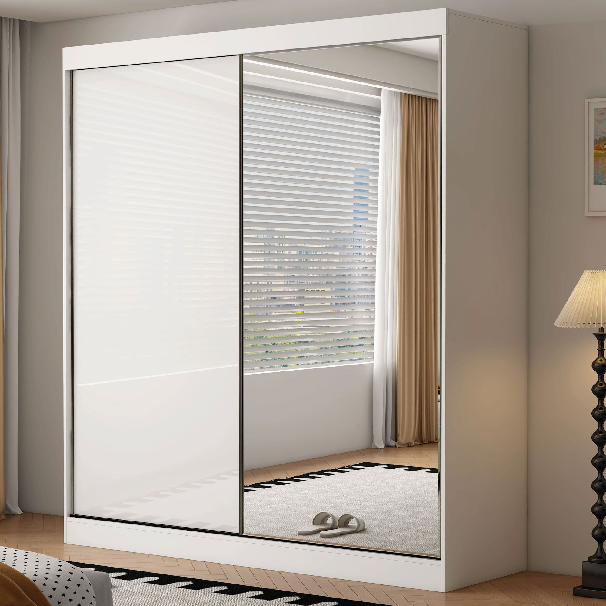 OCEANIC 2 Door Mirrored Sliding Wardrobe Gloss White - 200cm