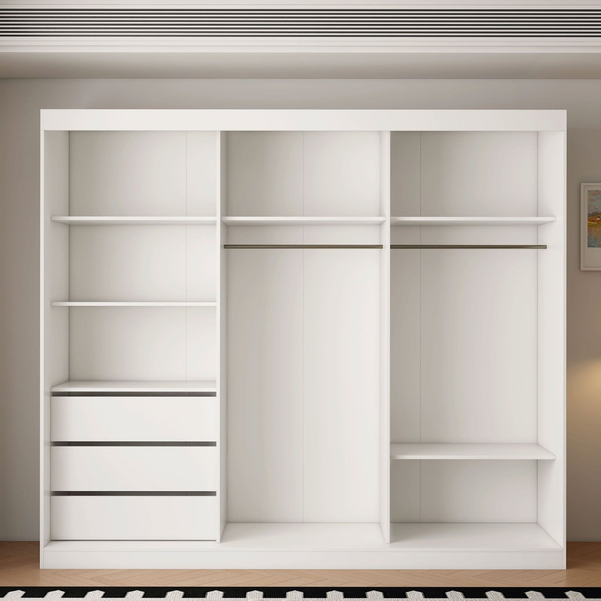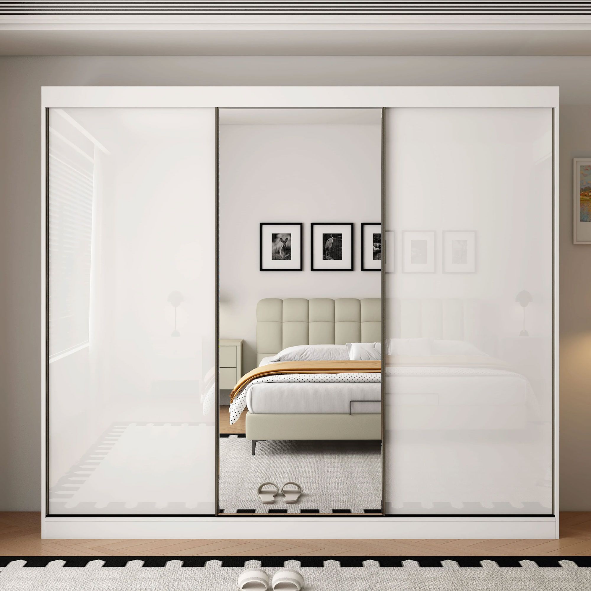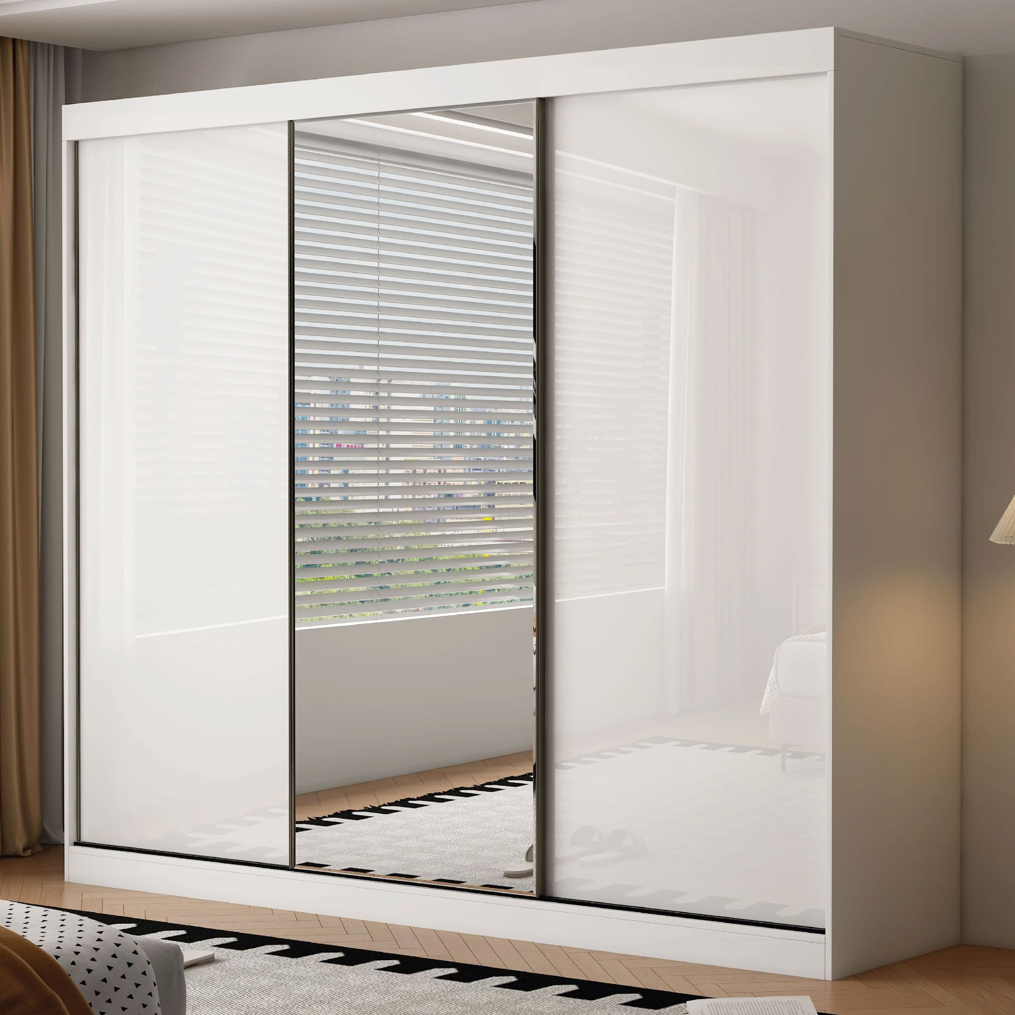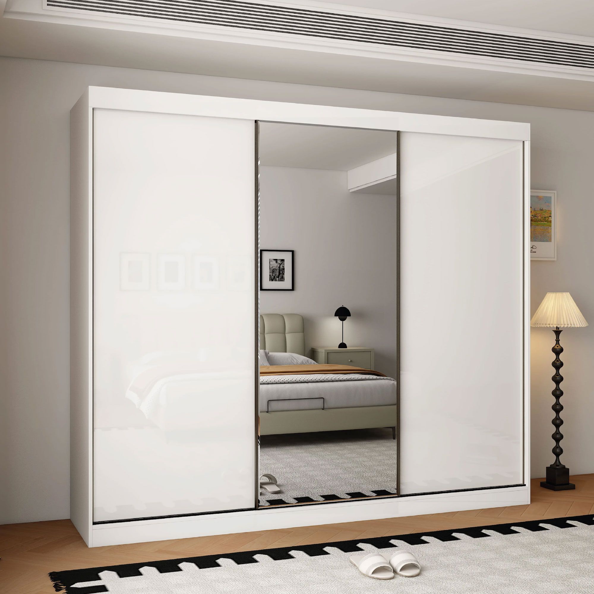 OCEANIC 3 Door Mirrored Sliding Wardrobe Gloss White - 250cm