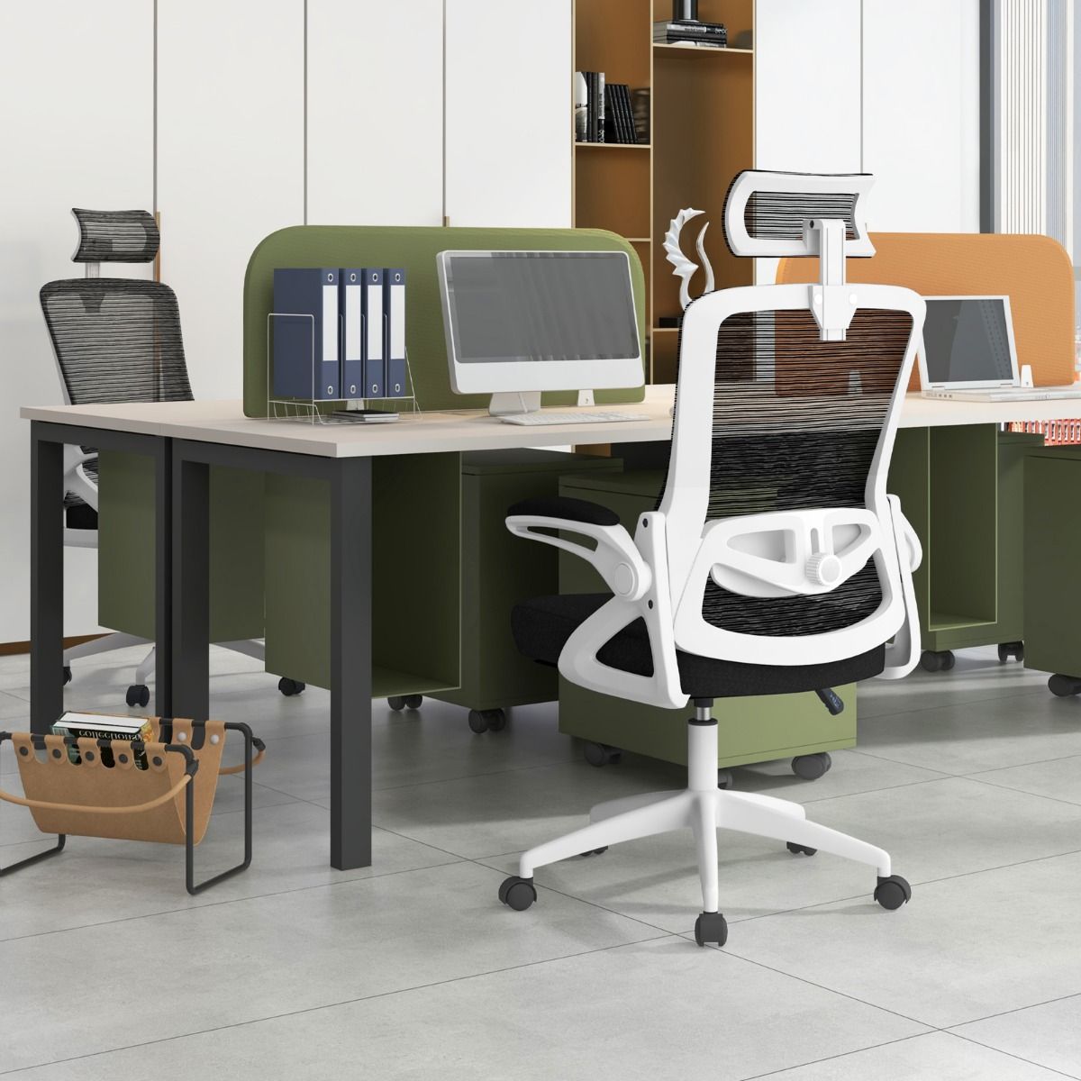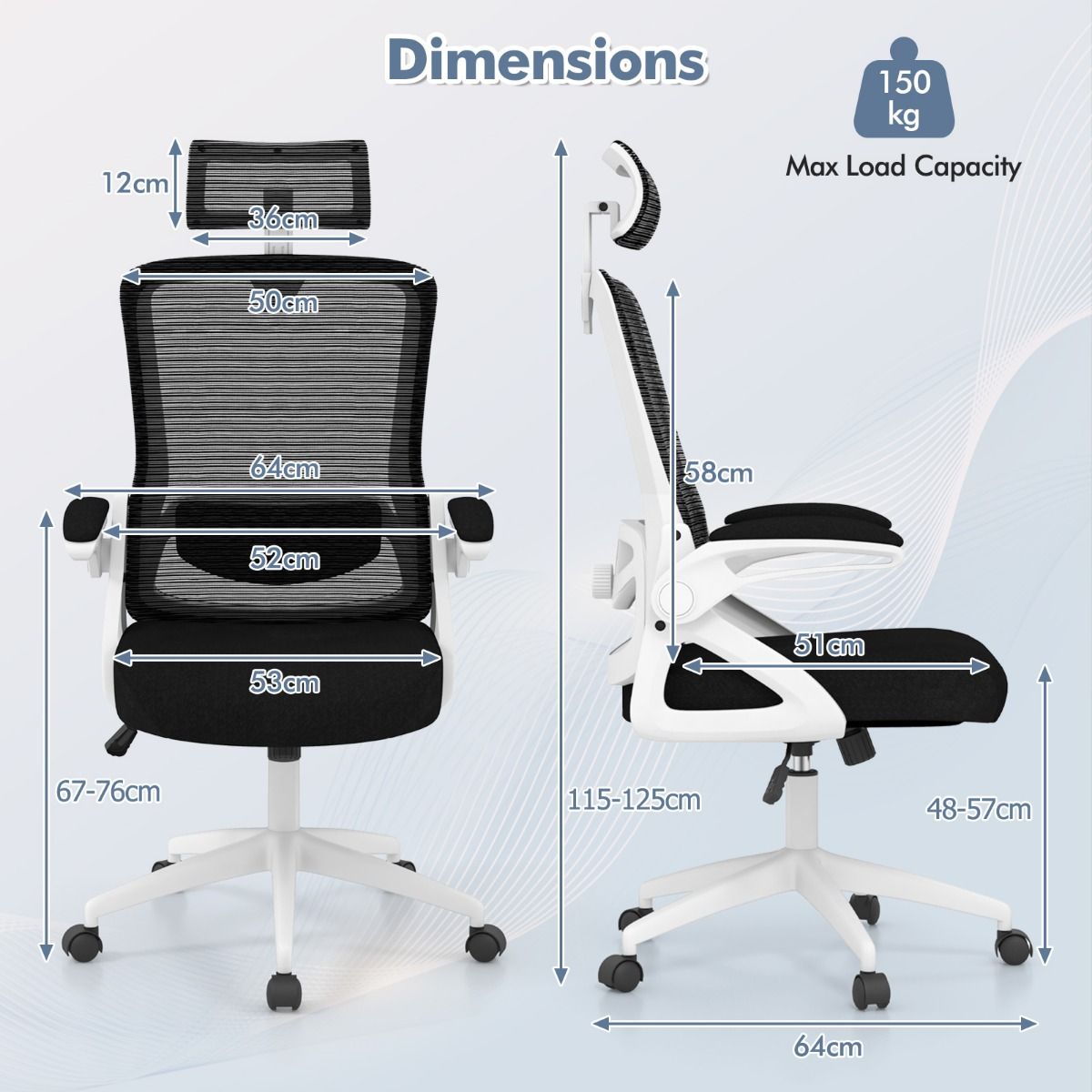Office Chair - Ergonomic Office Chair with Adjustable Lumbar Support White 64cm