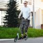 - Wide, non-slip deck for standing. Retractable kickstand to stand upright