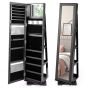 ONZEAL Full Length Mirrored Jewellery Cabinet Rotates 360° with Open Display Shelves-Black