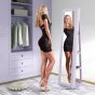 ONZEAL Full Length Mirrored Jewellery Cabinet Rotates 360° with Open Display Shelves-Purple