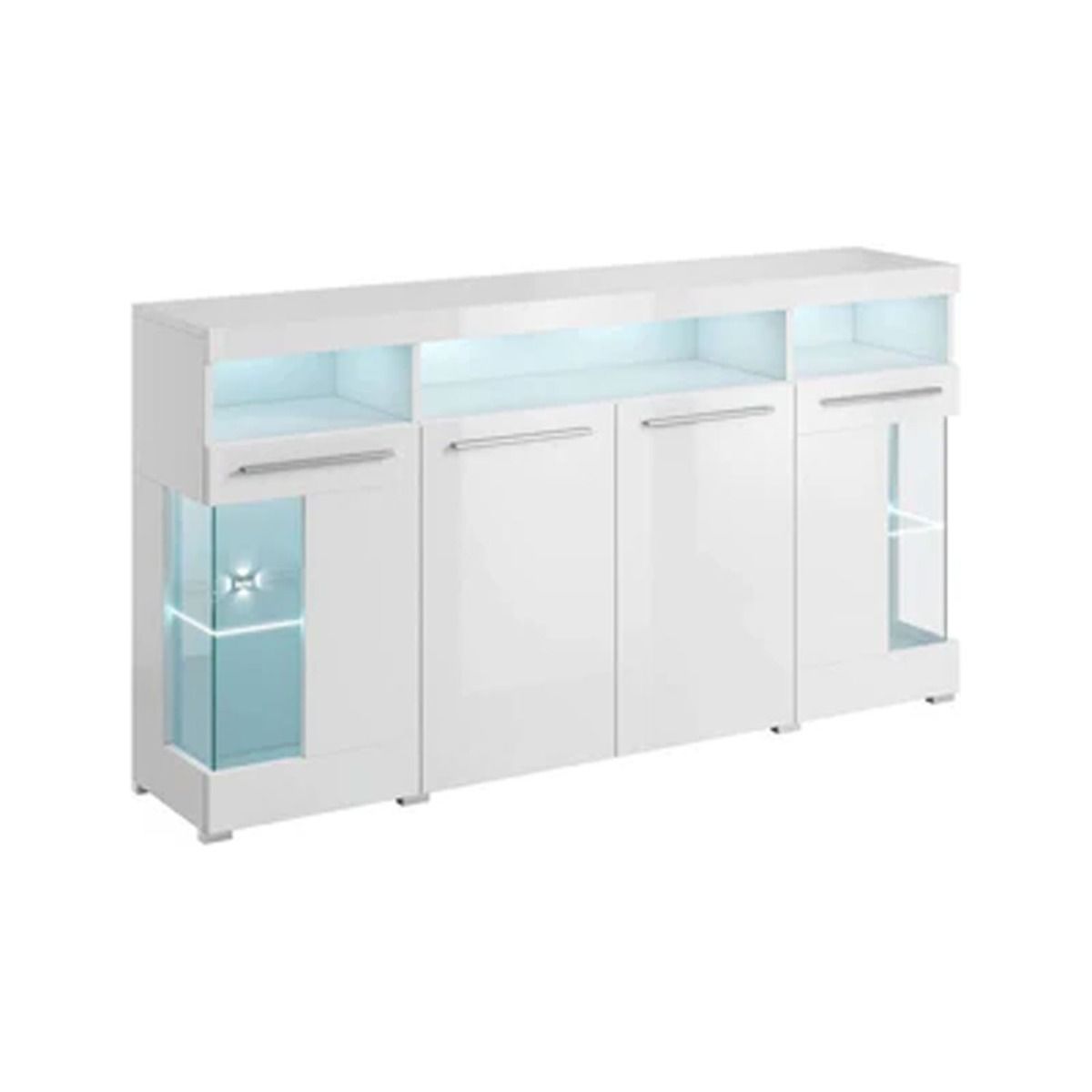 Give your room a modern and functional flair with the Opulent Orbit Sideboard. It comes with three open, two closed compartments and a pair of glass shelves for all of your storage needs. The cabinet is made from 16mm laminated board that ensures sturdiness, resistance to scratches and easy cleaning. Its chic design will blend in any modern, industrial or contemporary decor.