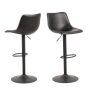 Enhance your seating experience with our sleek bar stool, designed with a vintage black finish and adorned with cream and zigzag stitching for a touch of elegance. The robust matte black steel base features a gas lift and swivel function, blending functionality with a modern aesthetic. Offered in pairs for your convenience.