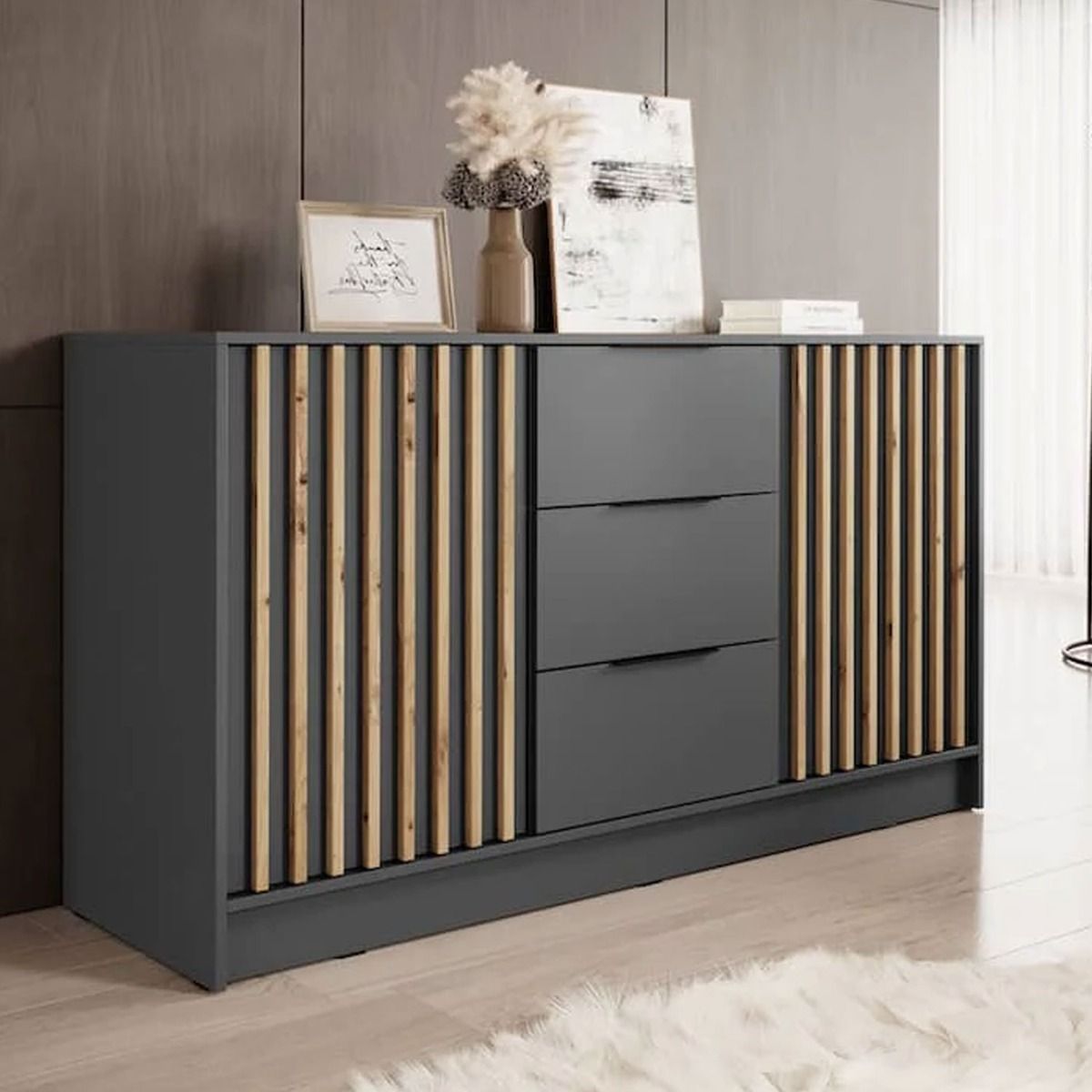 Elevate your living space with the Orion Jax Sideboard, a stylish and functional addition that combines modern design with ample storage. With two hinged doors, three drawers, and two shelves, this sideboard is the perfect blend of form and function, making it a standout piece in any room.