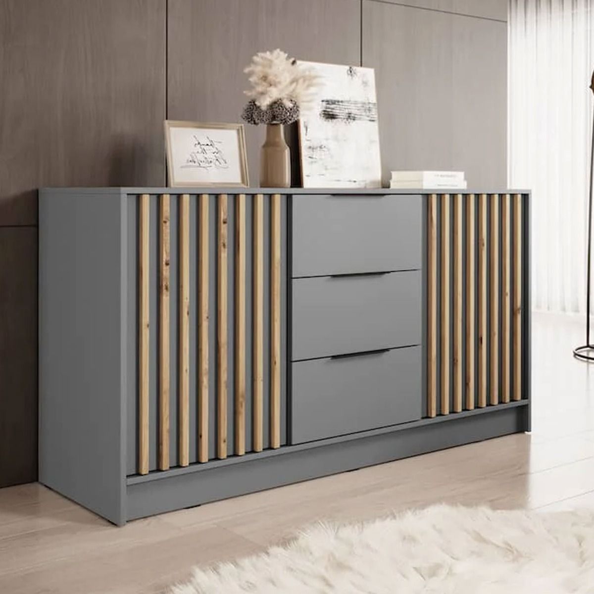 Elevate your living space with the Orion Jax Sideboard, a stylish and functional addition that combines modern design with ample storage. With two hinged doors, three drawers, and two shelves, this sideboard is the perfect blend of form and function, making it a standout piece in any room.
