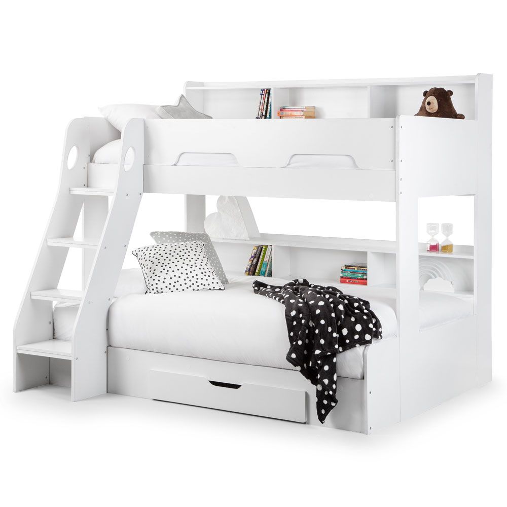 The Orion Triple Bunk is available in a modern Anthracite or White finish. The Orion combines style with great practicality and includes a handy pull-out drawer and extensive shelving for kids' books and toys, with a subtle raised lip to prevent anything slipping down the back.