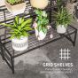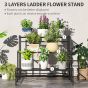 Show off greenery indoors and outdoors, with this Outsunny plant and flower stand. Three tiers gives you lots of room for holding and organising how you want. The slatted shelves allow easy air flow and drainage. Use it beyond a plant shelf: even for books, ornaments and whatever else you feel like. Three shelves: Tiered plant stand features offers plenty of room for holding plants, flowers and more - plenty of room to organise how you wish. Slatted shelves: No water build up on this plant shelf - keeps whole unit aerated too. Metal structure: Powder coated for extra strength, this is a tough black plant stand. Resistant to rusting for prolonged wear. Versatile: Not just an outdoor plant stand and indoor plant stand, it's suitable for holding your favourite books, decorative items and more.