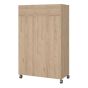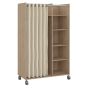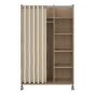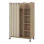Osken Open Mobile Wardrobe Unit in Oak with Beige Textile Curtain on Wheels