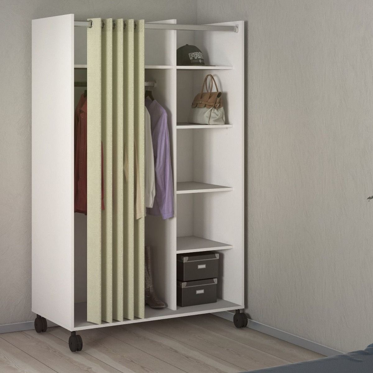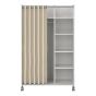 Osken Open Mobile Wardrobe Unit in White with a Beige Textile Curtain on Wheels
