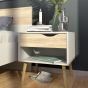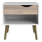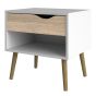 Bedside Table - OSLO 1 Drawer Nightstand White and Oak 50.2cm