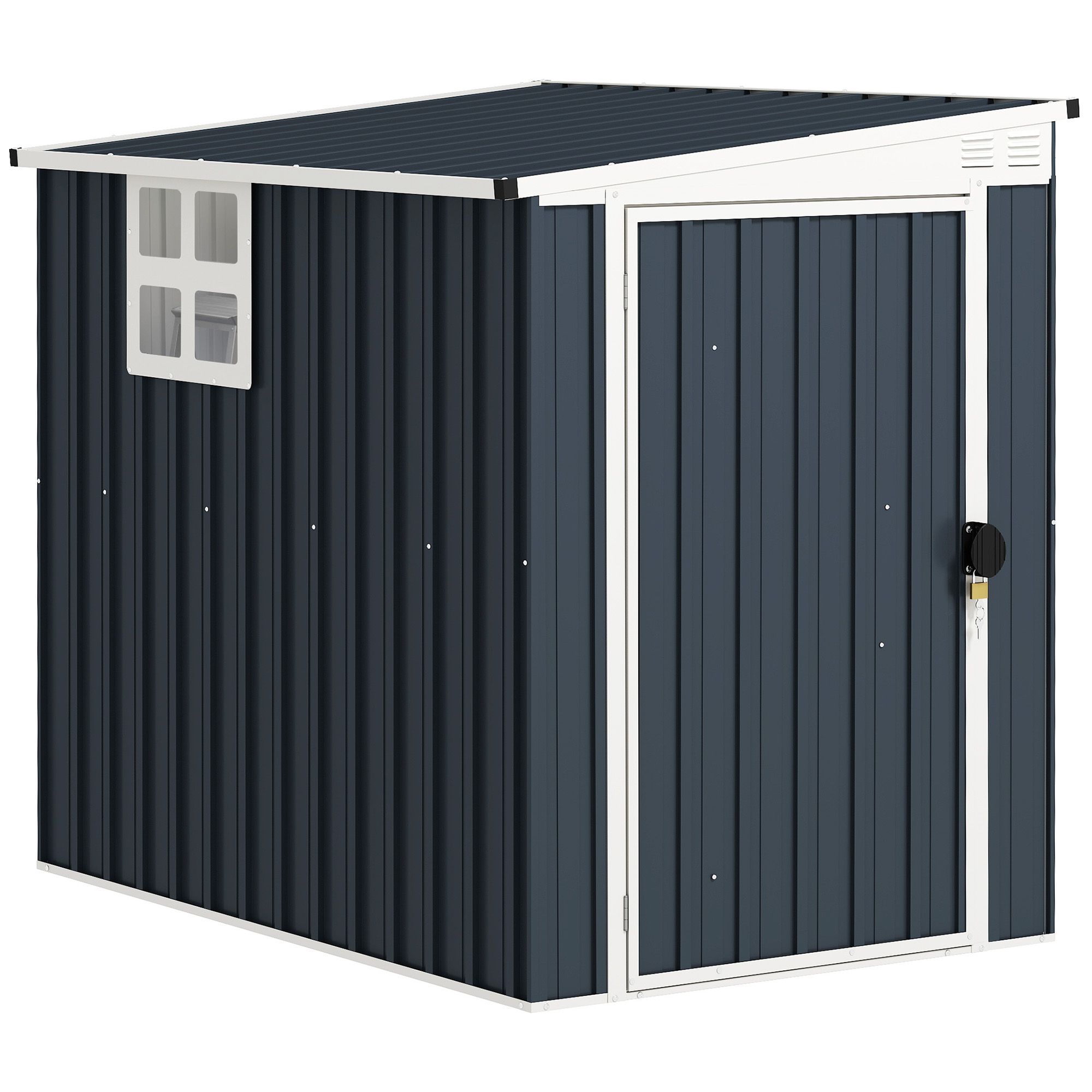 OSTREL 6ft Garden Shed Galvanised Steel Outdoor Storage Shed with Window - Grey