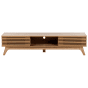 The minimalistic yet highly sophisticated TV stand is an essential piece for your living room, matching any contemporary or retro decor. Made of high-quality materials, it offers a timeless look to the piece. Storing the daily appliances or RTV utilities is easy due to spacious shelves with chic looking, wooden grill. A truly versatile piece is an excellent addition to virtually any of your home interiors.