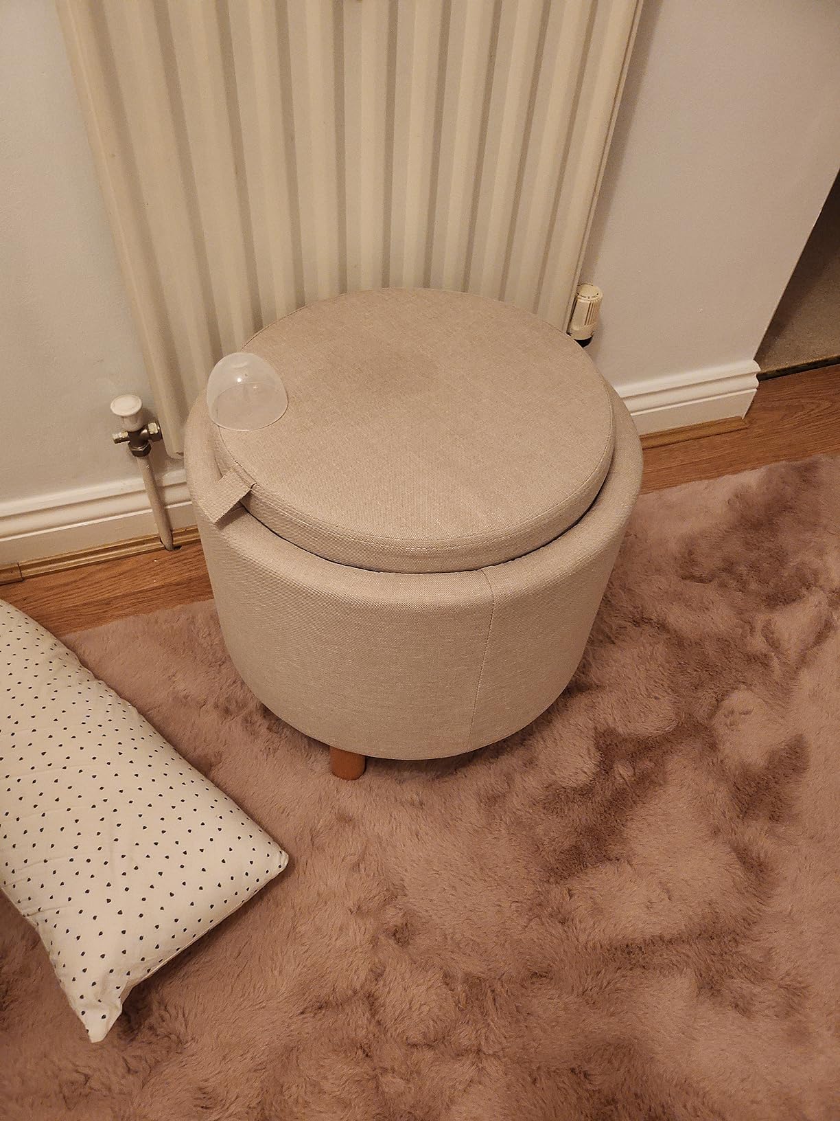 Ottoman Bench - Modern Round Padded Storage Ottoman with Hidden Storage Space-Beige