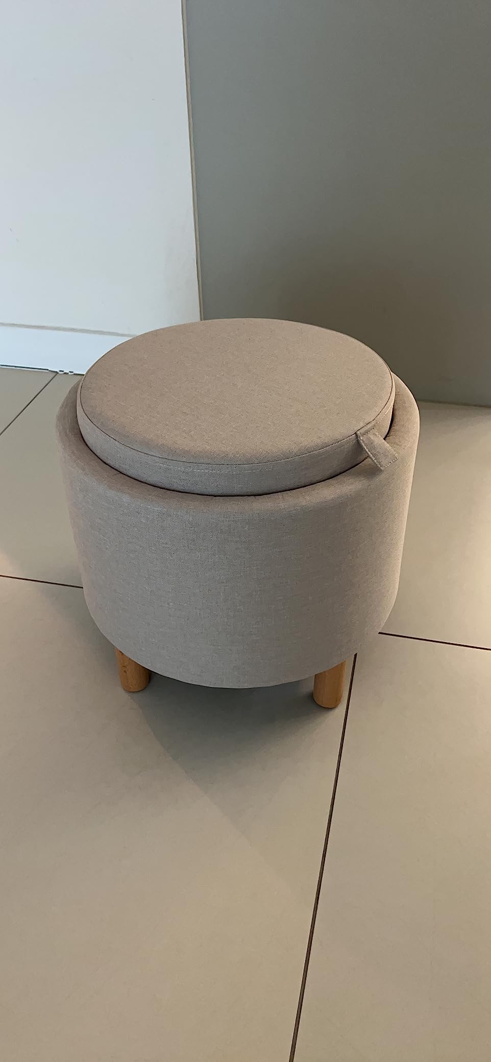 Ottoman Bench - Modern Round Padded Storage Ottoman with Hidden Storage Space-Grey