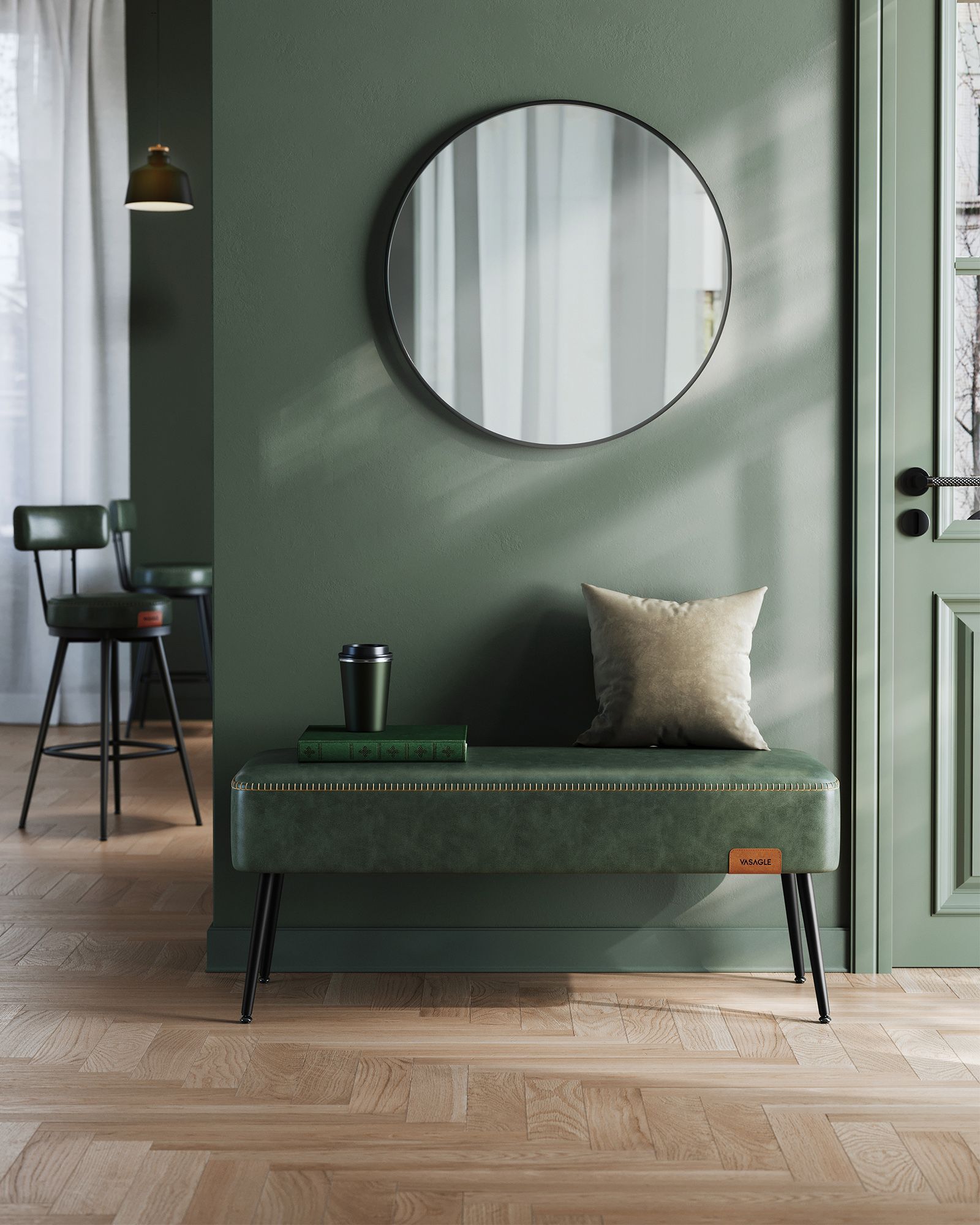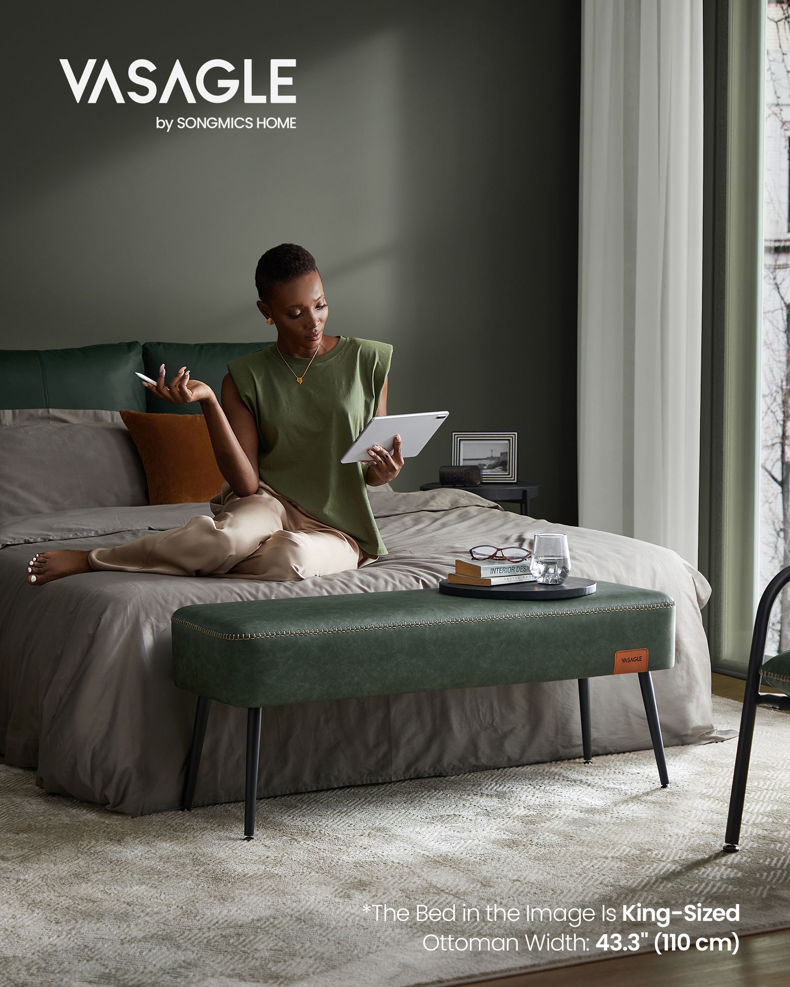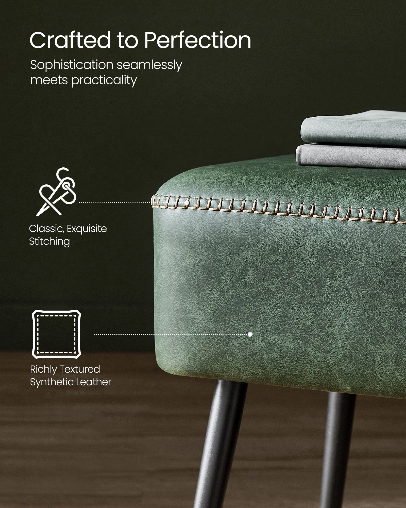 Ottoman Bench - SERLIA EKHO Collection Forest Green Velvet Tufted Ottoman Bench - Forest Green