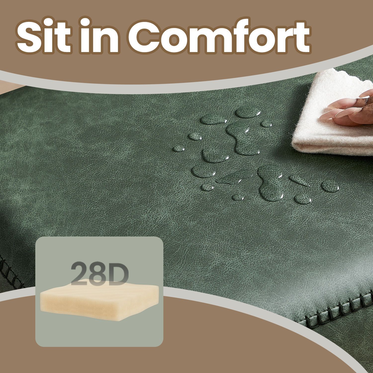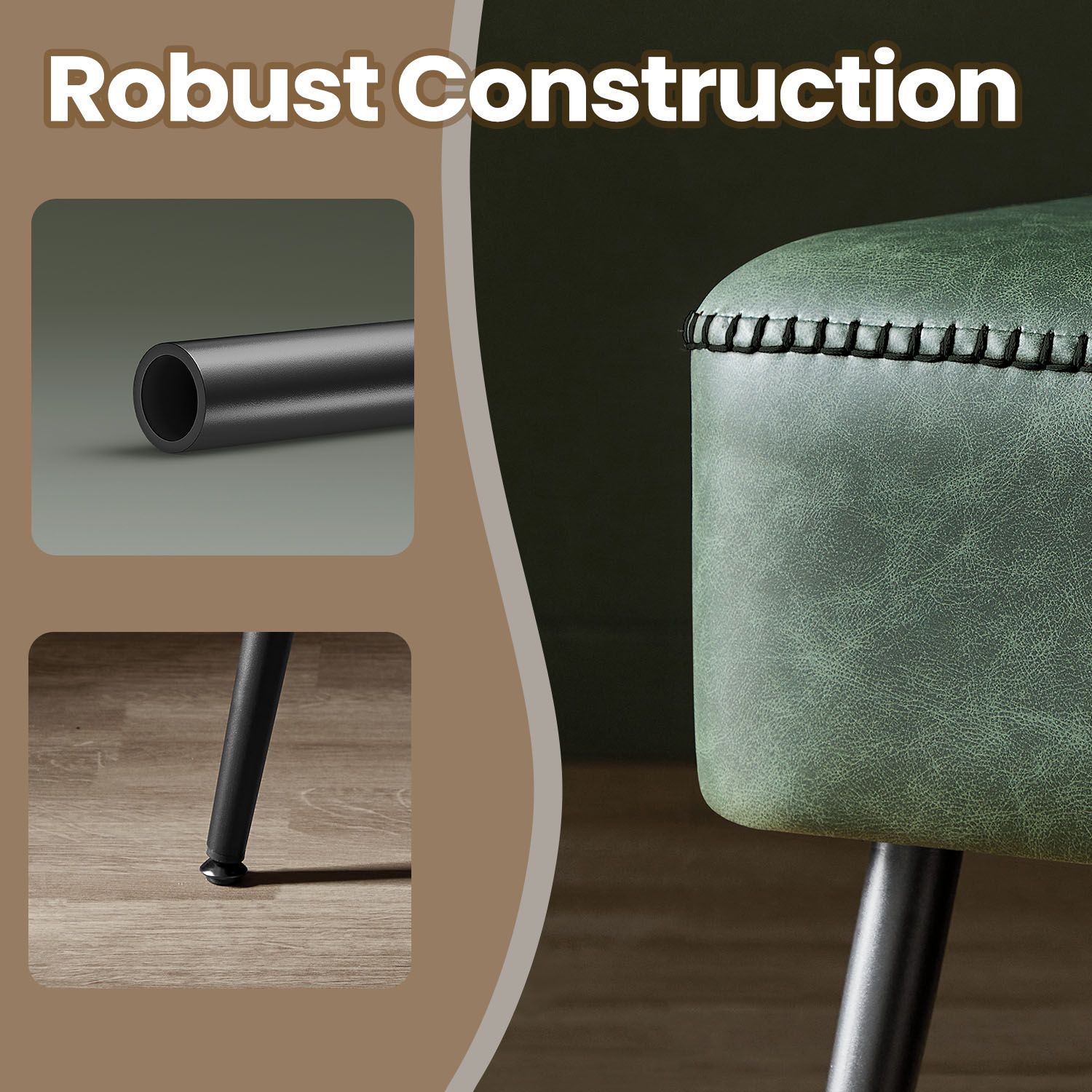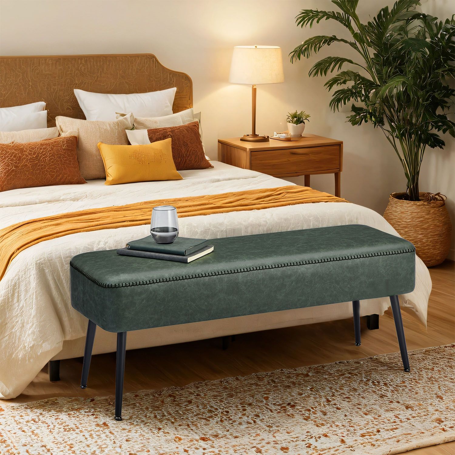 Ottoman Bench - VERRA Entryway Ottoman with PU Leather and Steel Legs - Black Green
