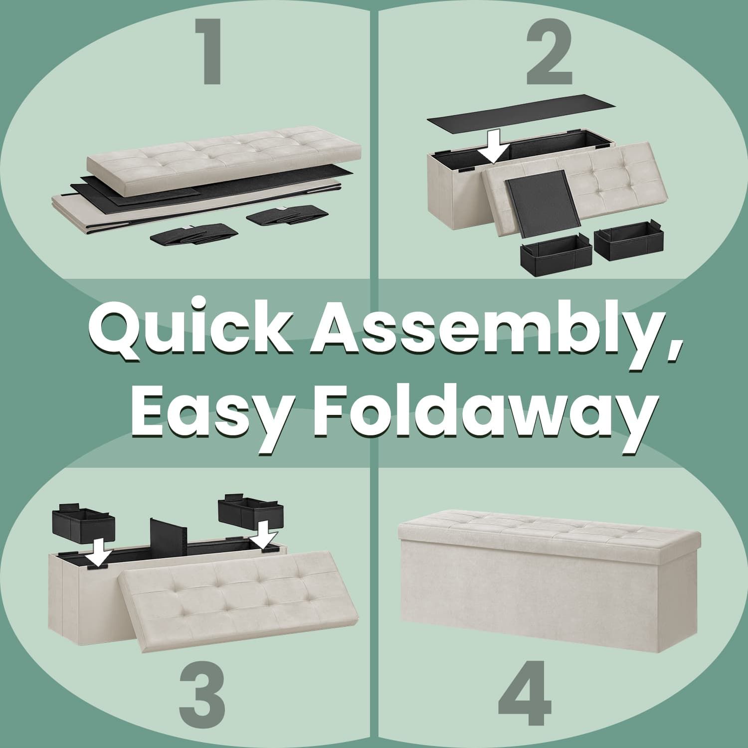 Ottoman Foot Rest - VIVRAH Foldable Storage Ottoman - White