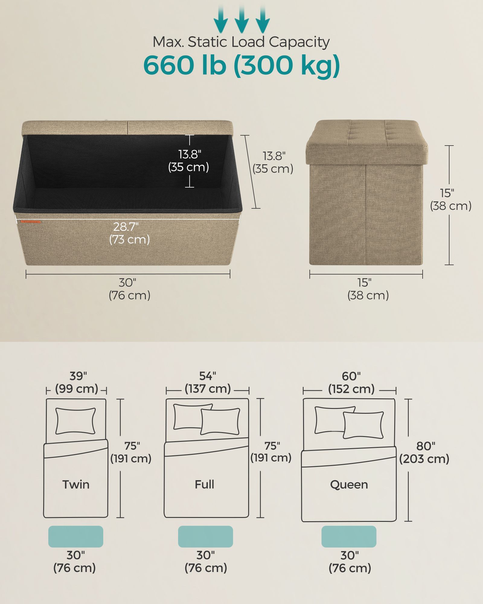Ottoman Seats - LUSVAS Foldable Storage Ottoman with Flipping Lid - Camel Brown