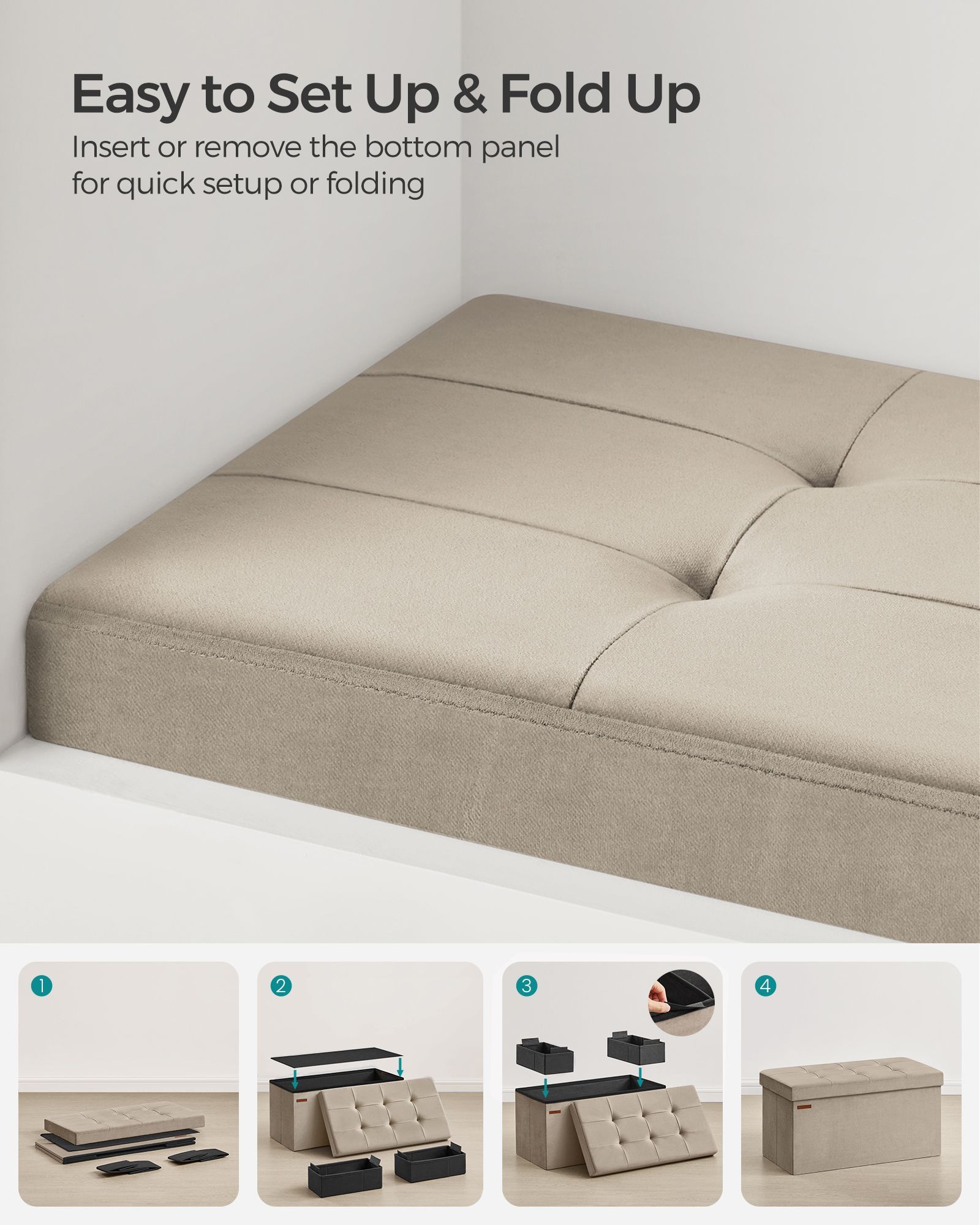 Ottoman Seats - LUSVAS Foldable Storage Ottoman with Lid 76cm - Camel Brown