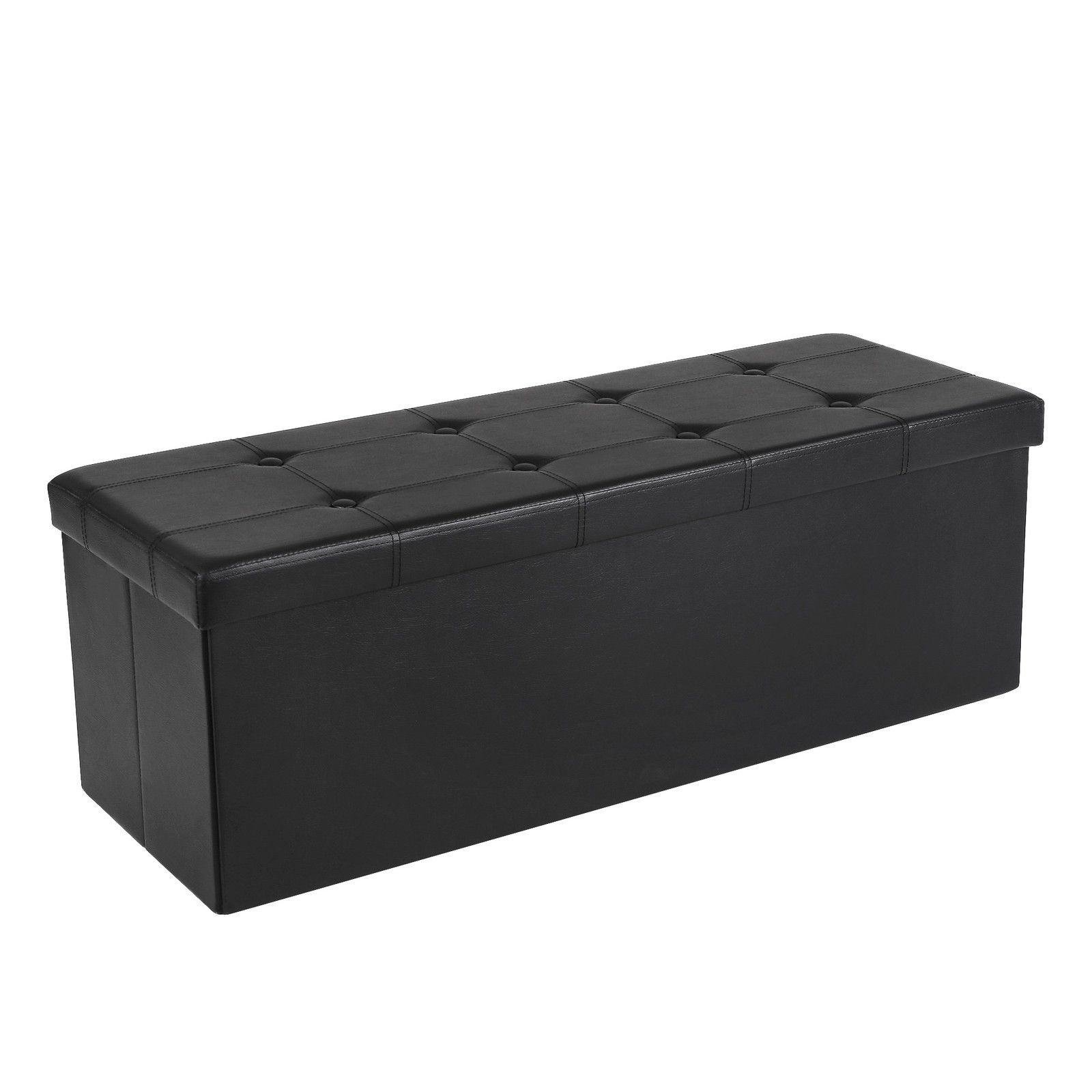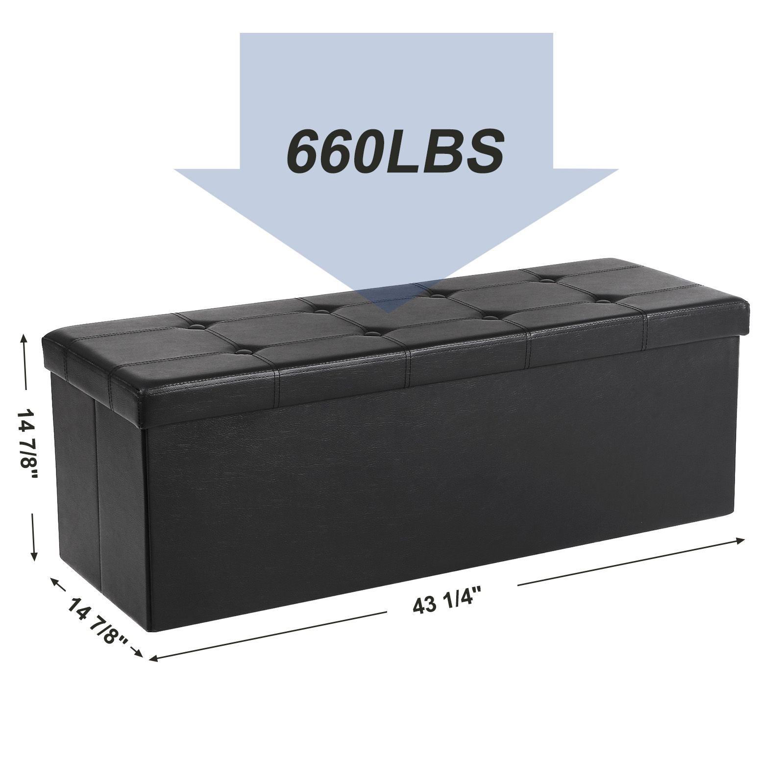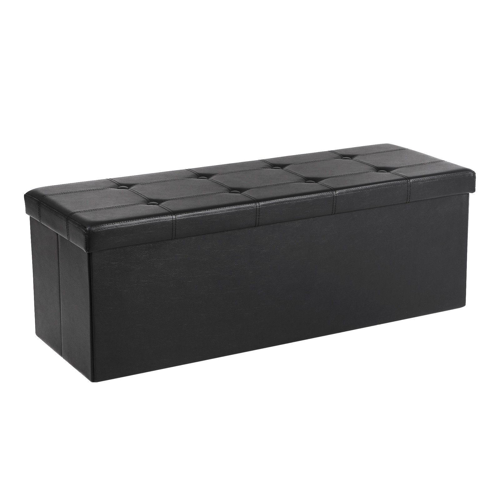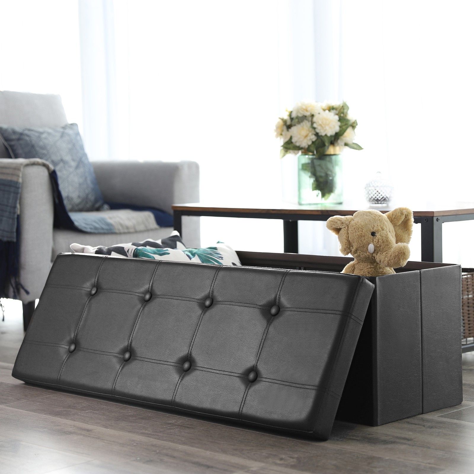 Ottoman Seats - MONNA Foldable Cube Storage Ottoman with 300kg Capacity - Black