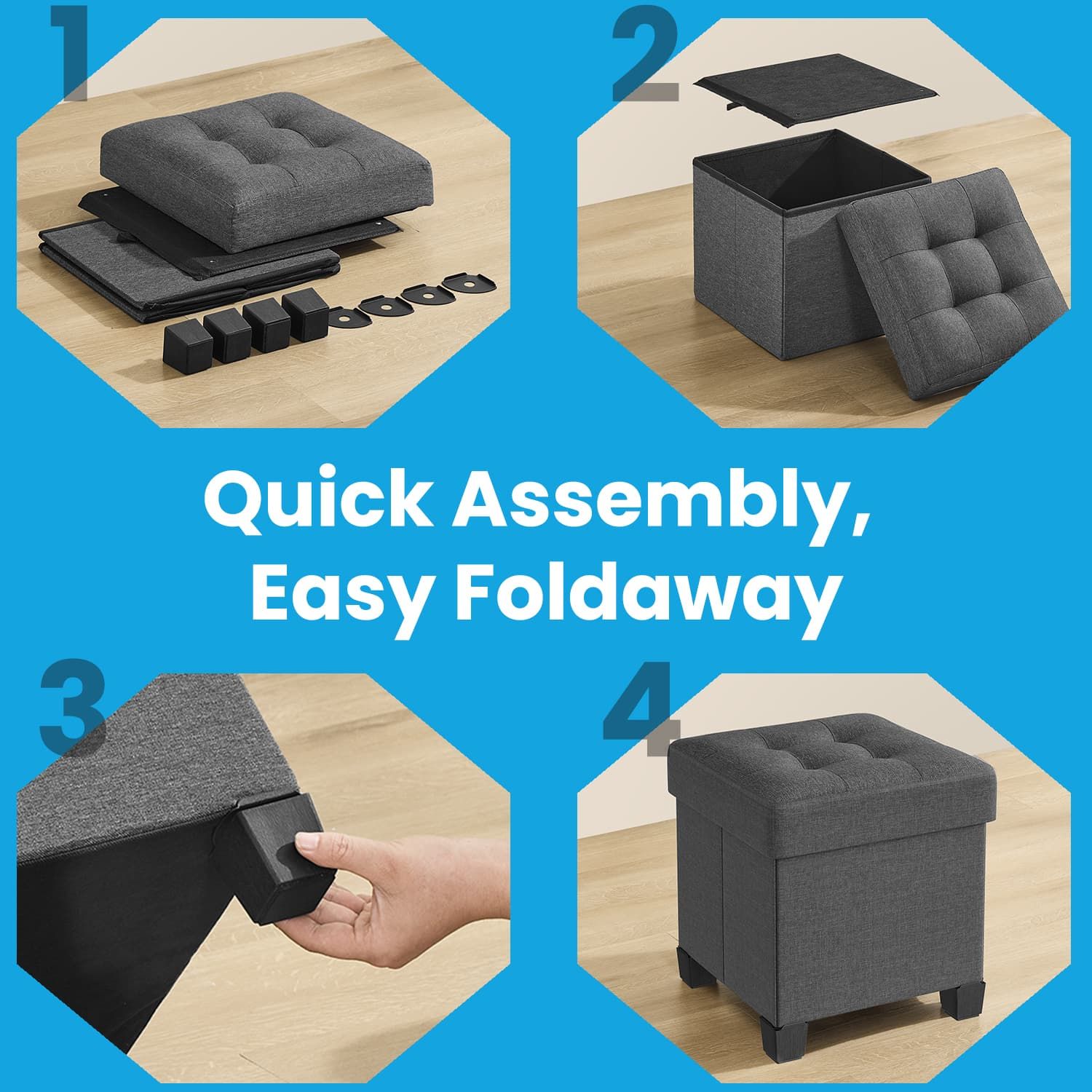 Ottoman Seats - VERRA Foldable Foot Rest 38.1 x 38.1 cm - Grey
