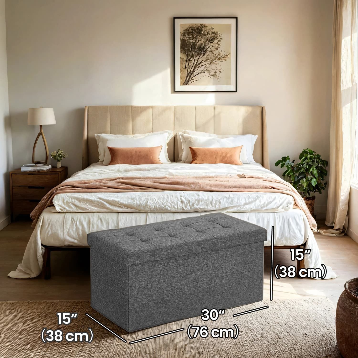 Ottoman Seats - VIVRAH 80L Storage Chest Ottoman Bench Linen - Grey