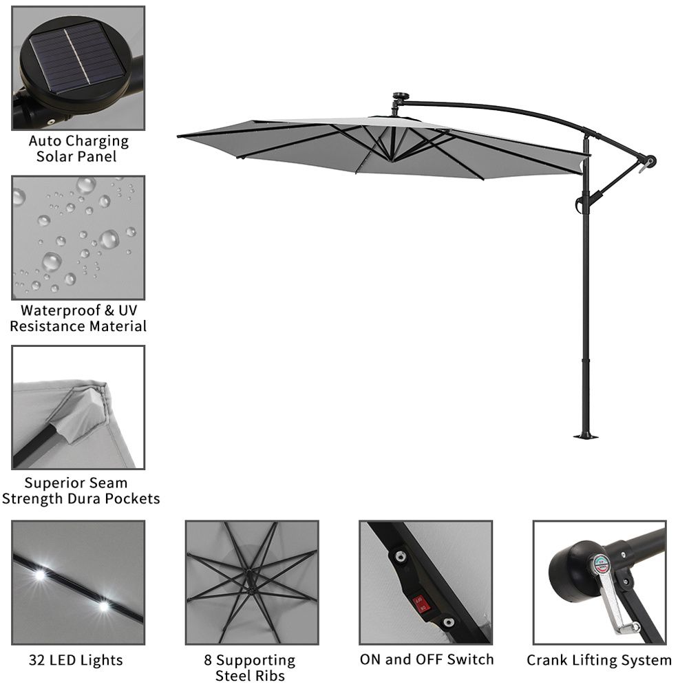 Outdoor 32 LED Lighted Patio Umbrella with Crank Lift System